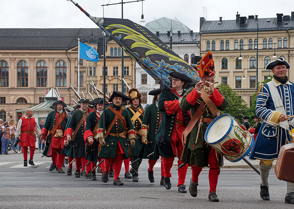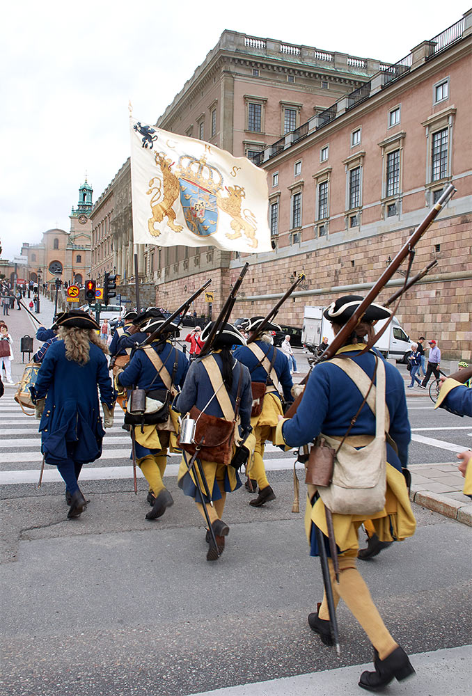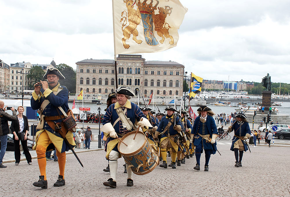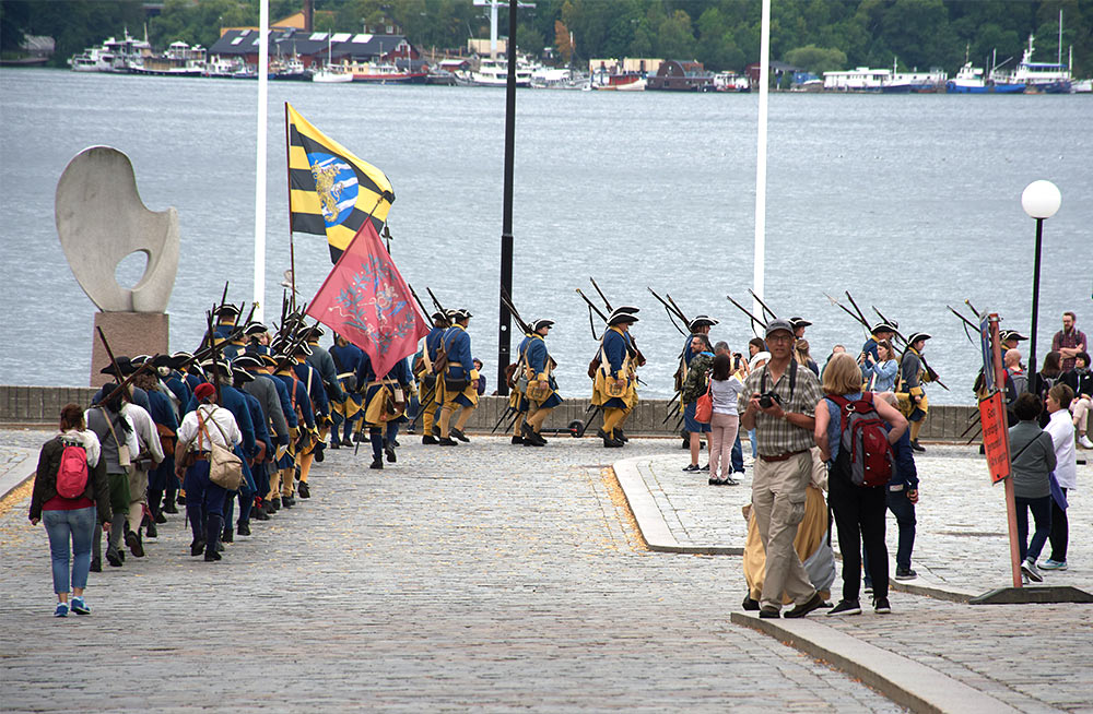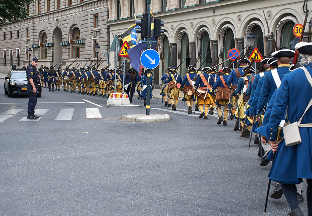 Выступление войск из военного лагеря на берегу пролива Баггенсстакет в составе походных колонн, торжественное прибытие в шведскую столицу на пароме, парад перед королевским дворцом "Трекрунур" в Стокгольме и далее - небольшая битва во дворе Музея Армии с последующей экскурсией, пивом, шоппингом и отбытием восвояси (т.е. обратно в лагерь).