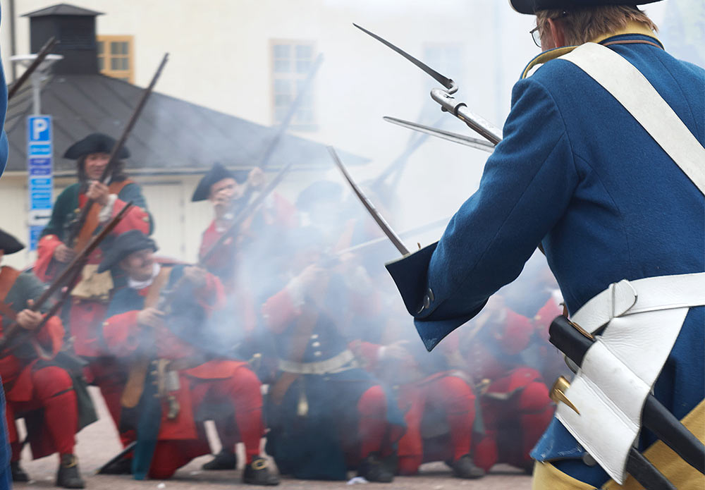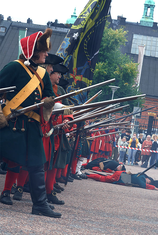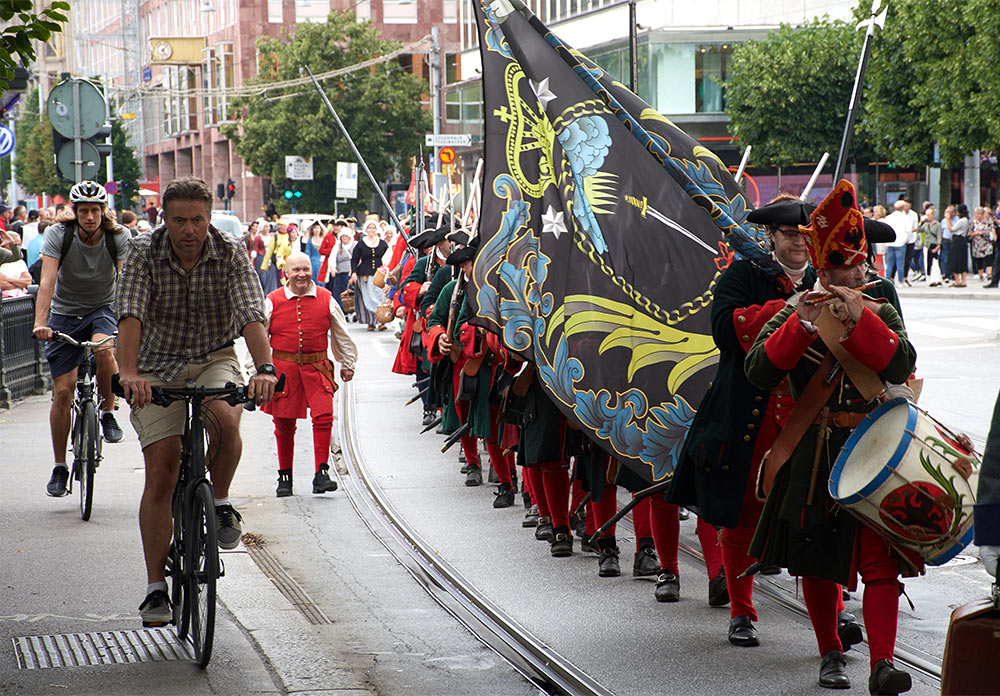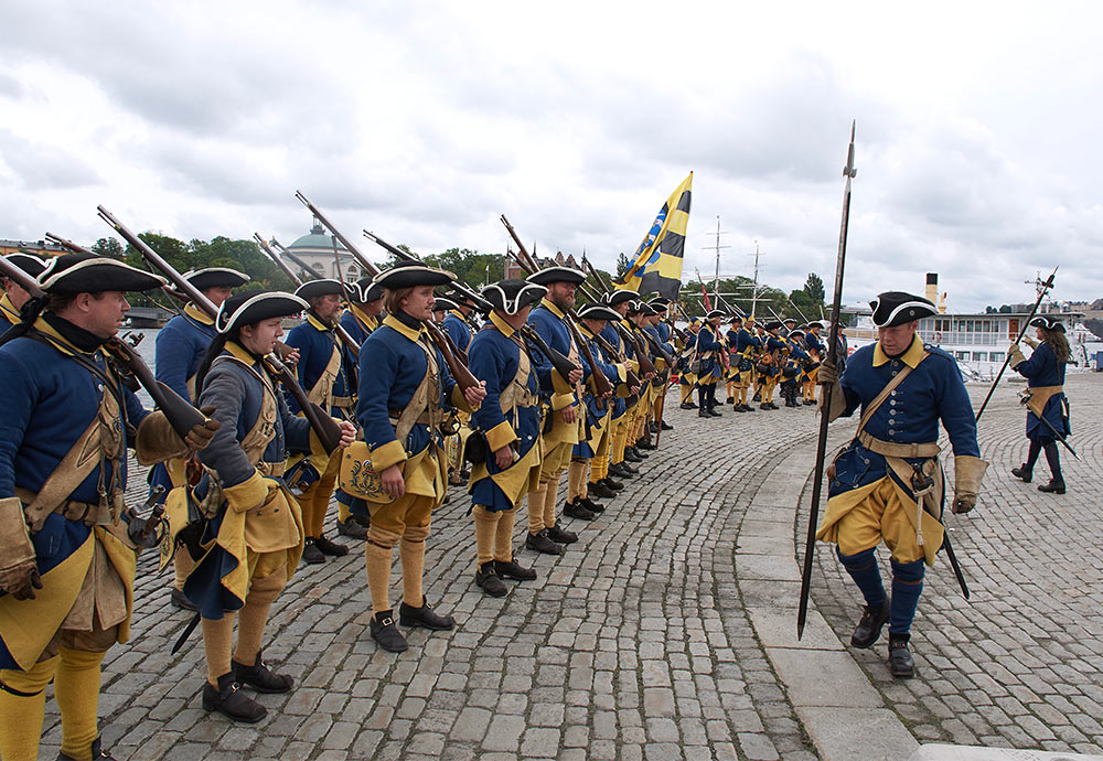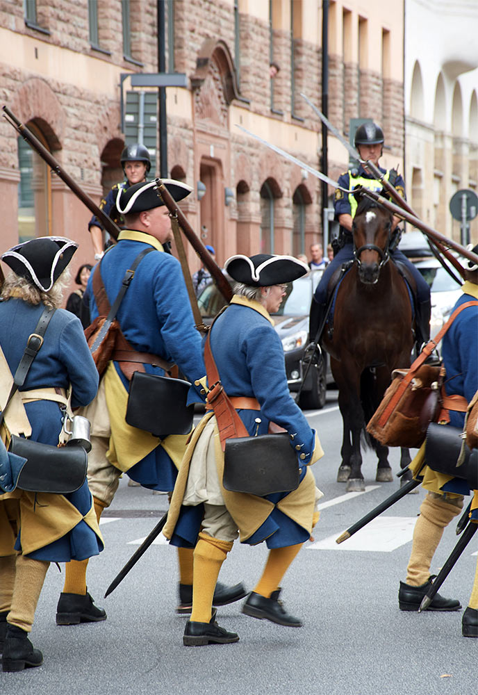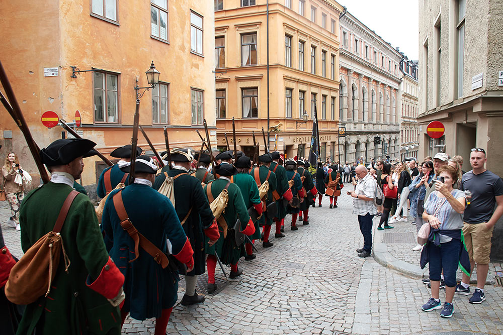Выступление войск из военного лагеря на берегу пролива Баггенсстакет в составе походных колонн, торжественное прибытие в шведскую столицу на пароме, парад перед королевским дворцом "Трекрунур" в Стокгольме и далее - небольшая битва во дворе Музея Армии с последующей экскурсией, пивом, шоппингом и отбытием восвояси (т.е. обратно в лагерь).
