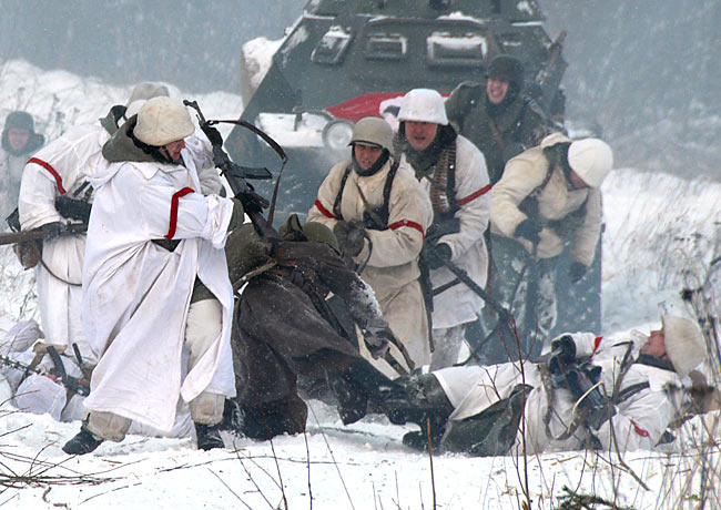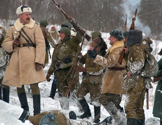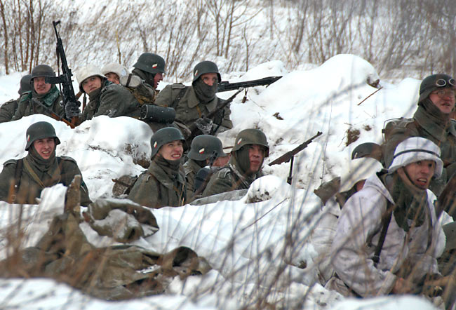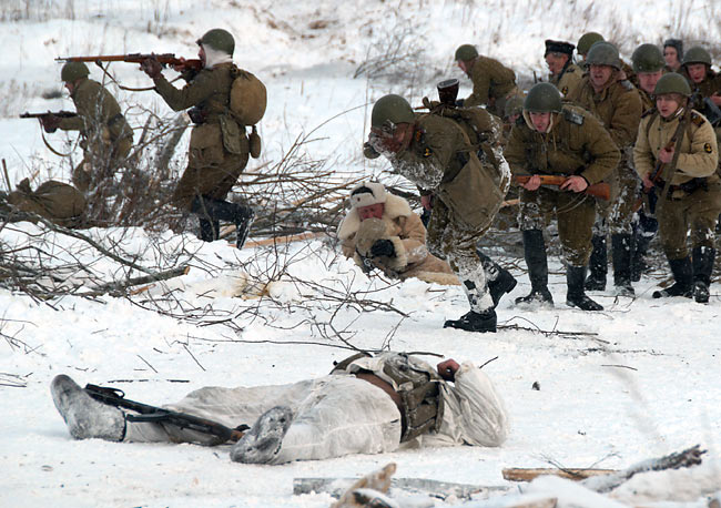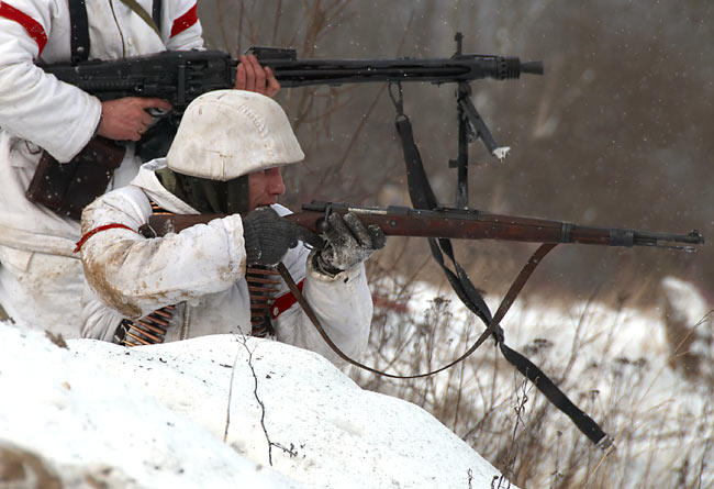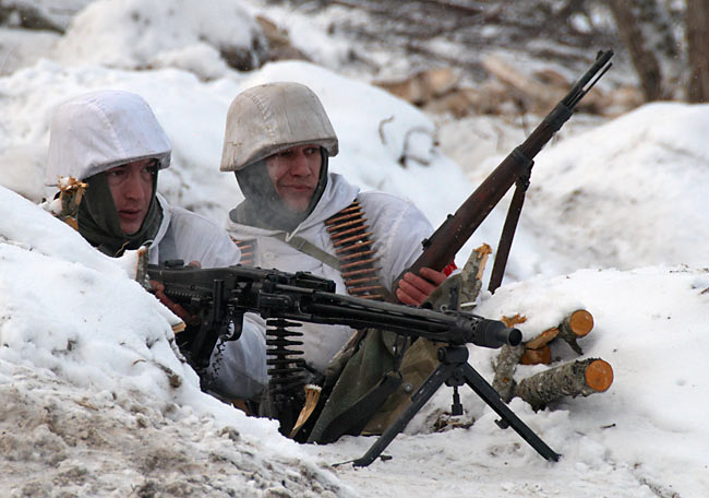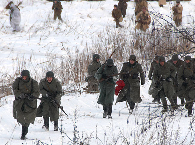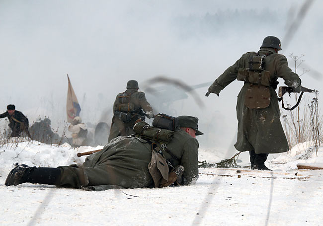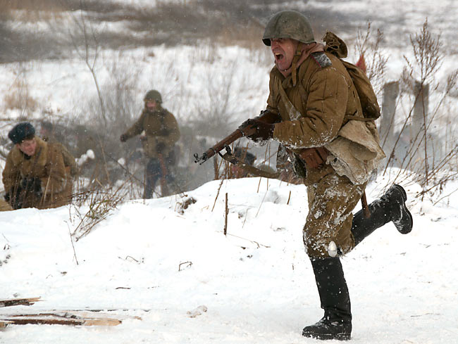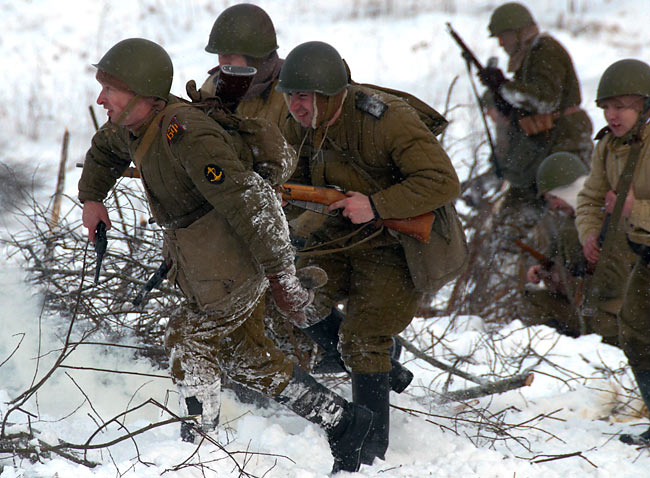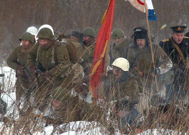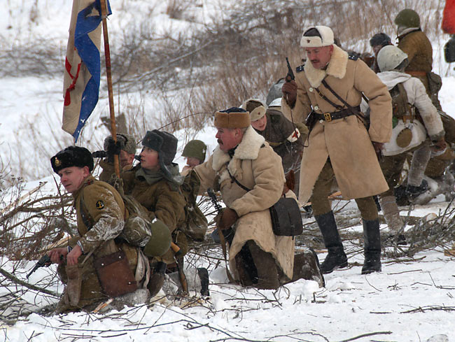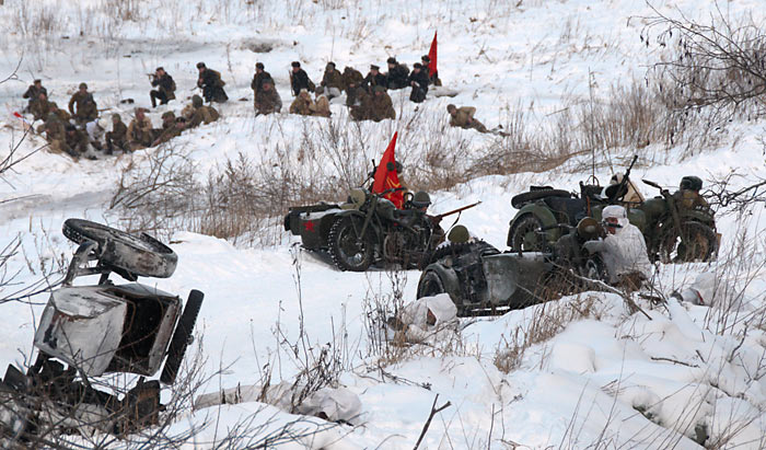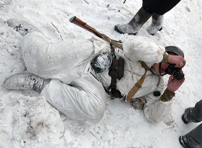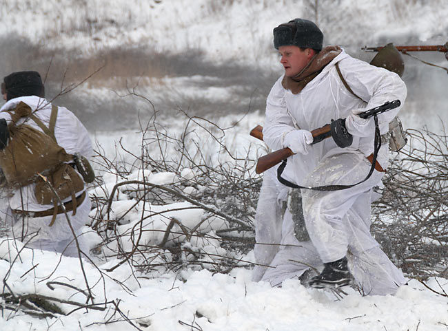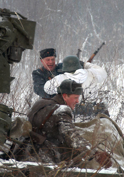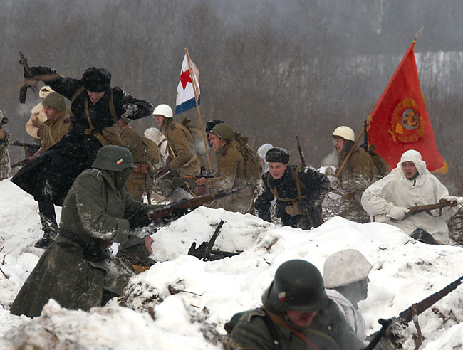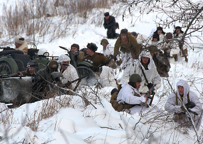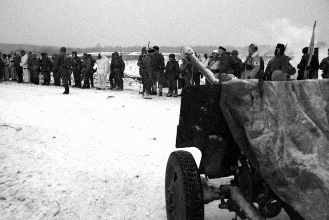 Репортаж с военно-исторической реконструкции, посвящённой полному снятию блокады у деревни Порожки Ленинградской области, состоявшейся 22.1.2012.