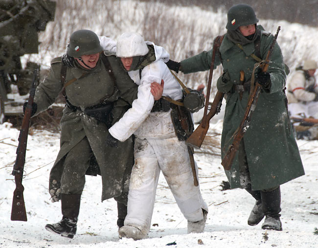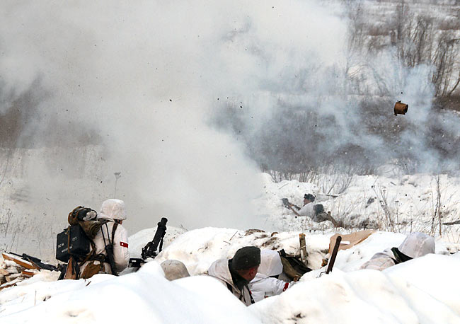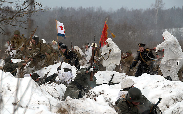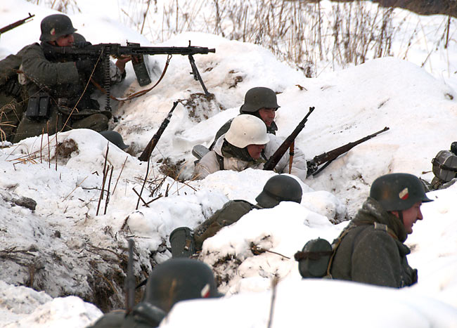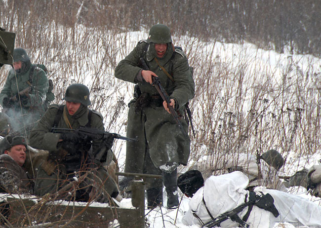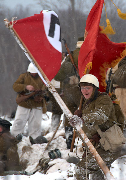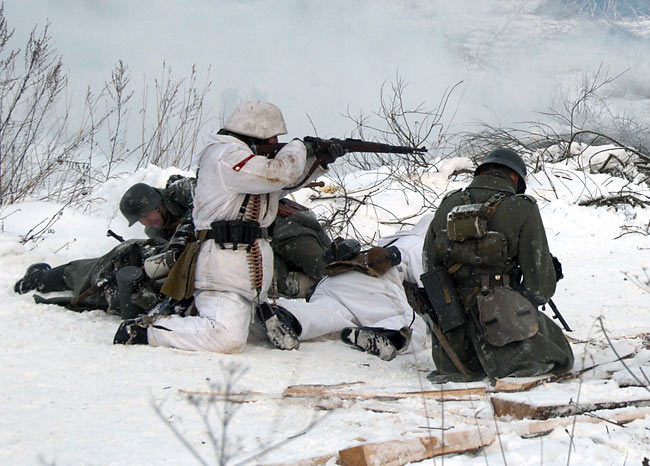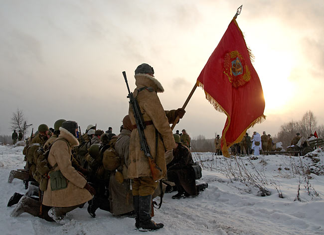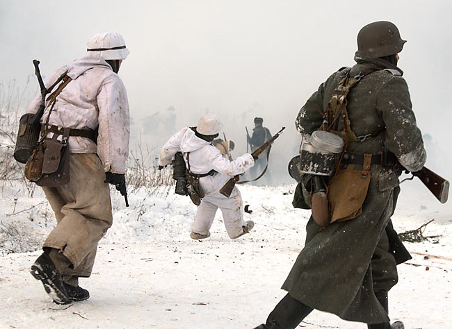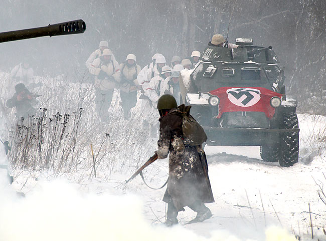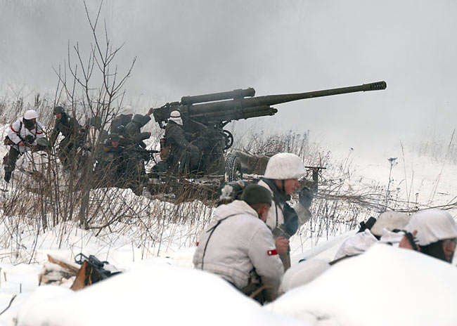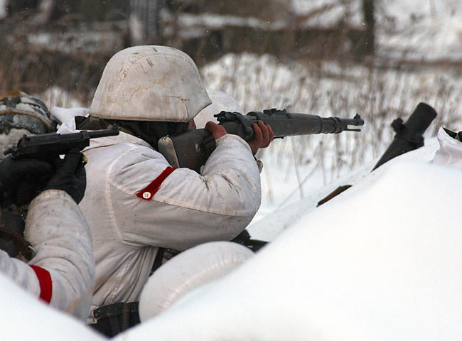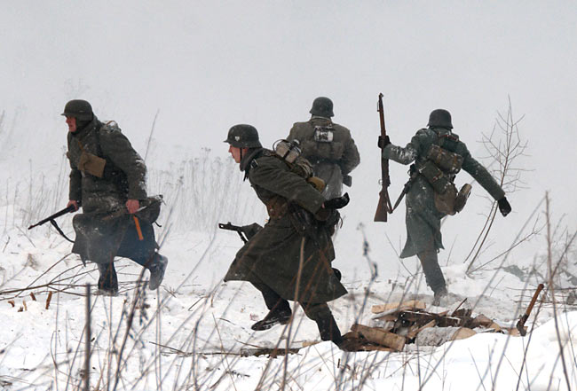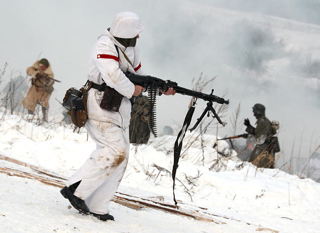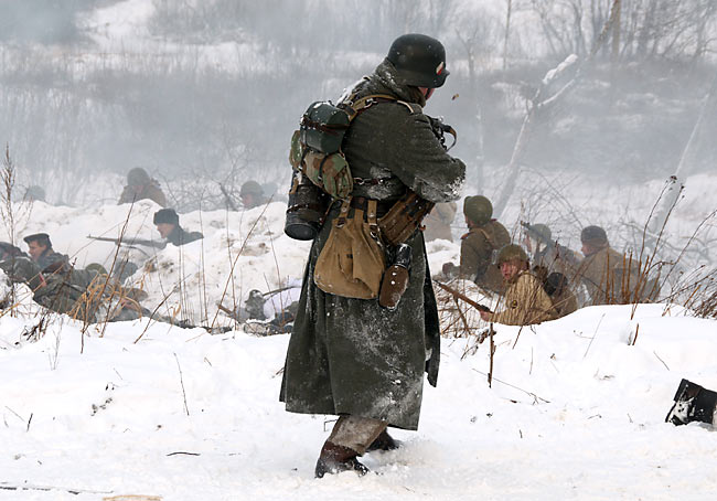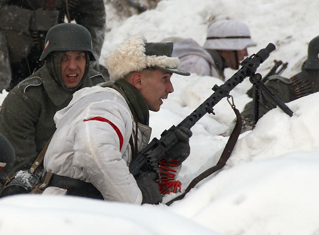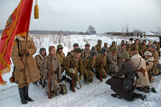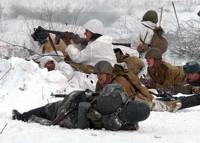 Репортаж с военно-исторической реконструкции, посвящённой полному снятию блокады у деревни Порожки Ленинградской области, состоявшейся 22.1.2012.