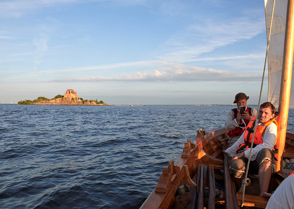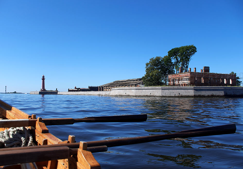 Небольшой морской поход #Петроматросов по фортам Кроннштадта на 14 весельном катере. Маршрут: Лахта - 5-й северный форт - 4-й северный Форт - пороховой погреб Морского ведомства - форт Павел I - форт Кроншлот - створный знак морского форватера - Лахта.