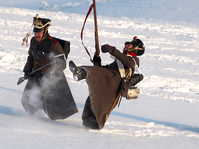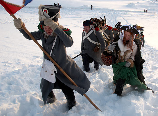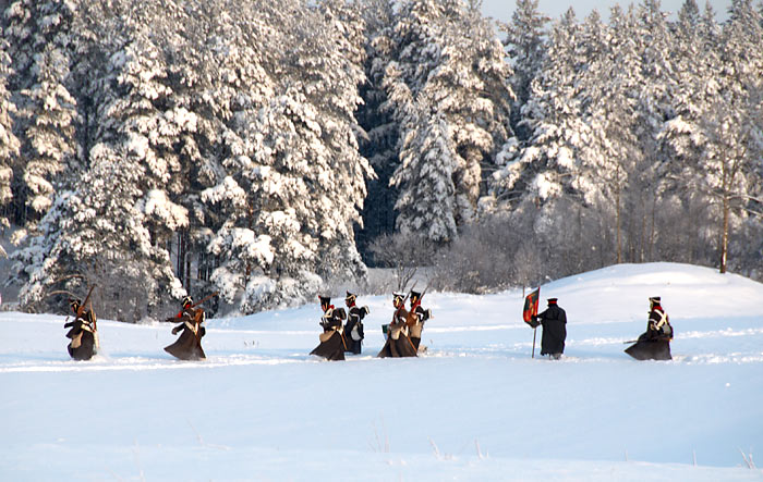Событие происходило 18 декабря сего года близ селения Янино под Санкт-Петербургом и по своим погодным условиям напоминало скорее Березину 1812 г, поелику во Франции таких погод не бывало со времён Людовика XII (это которыый "отец народа"). Температуры опускались до минус 15 градусов по Реомюру, глубина снега - до полуметра и более. Обмороженные и обессилевшие лежали по обочинам редких дорог. Множество осечек ружей из за сильного ветра. Большинство немногочисленных фото- и дагерротипных аппаратов вышло из строя, и несчастныя их владельцы брели по обледенелым дорогам Франции, пряча скрюченные пальцы под обшлага продуваемых морозным ветром серых солдатских шинелей...