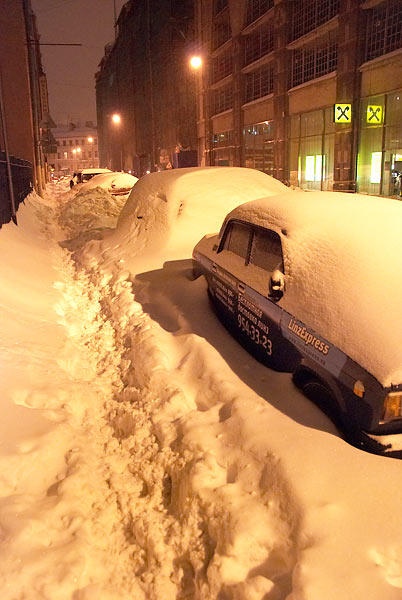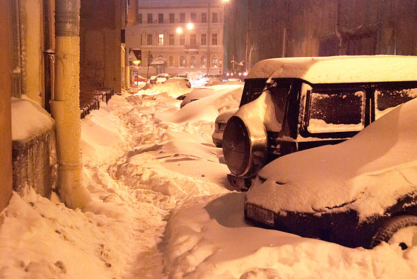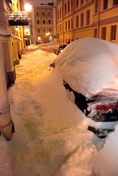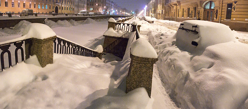Небывалый за последния 100 лет снегопад в Санкт-Петербурге в декабре 2009 года. Снежные заносы, метель, холодные батареи - катастрофа общегородского значения. Краткий репортаж с заснеженных улиц...