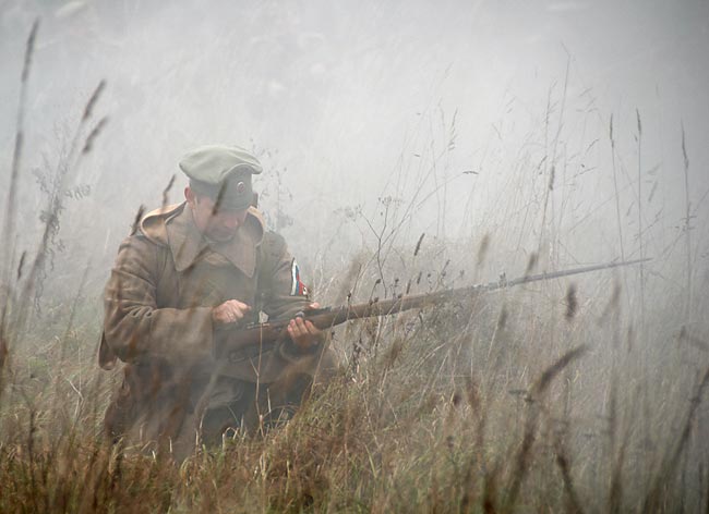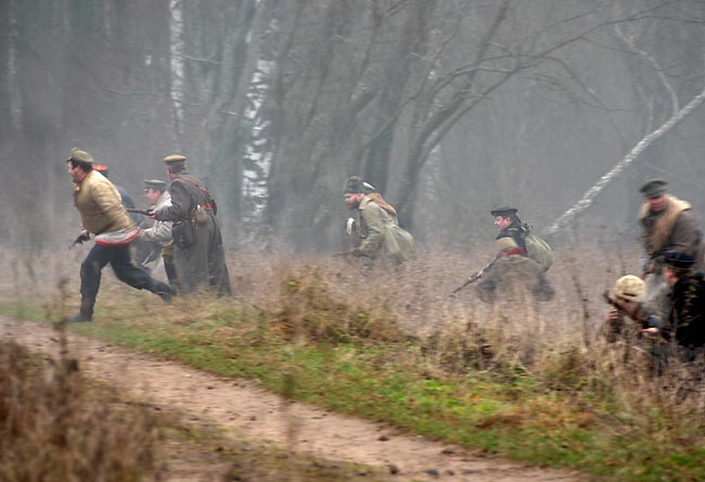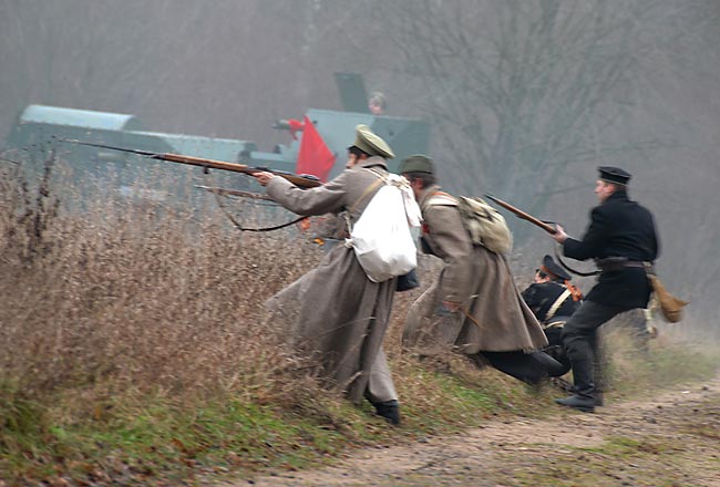 Реконструкция событий октября 1919 года - второго похода на Петроград Северо-западной армии под командованием генерала Юденича. Гатчину белые взяли 17 октября и на следующий день двинулись на штурм Петрограда. Однако на Пулковсих высотах их встретили отряды мобилизовагных рабочих и «Башкирской группы» в составе Башкирской кавалерийской дивизии и отдельной Башкирской стрелковой дивизии. Ценой огромных потерь (до 10 тыс. убитыми) белых удалось остановить. 21 — 25 октября бои шли с переменным успехом, затем красные начали теснить противника. В ночь на 3 ноября Гатчина была оставлена белыми без боя.