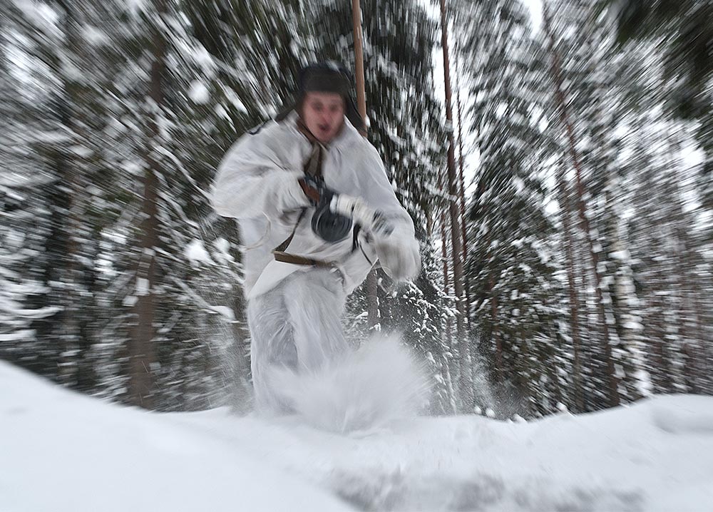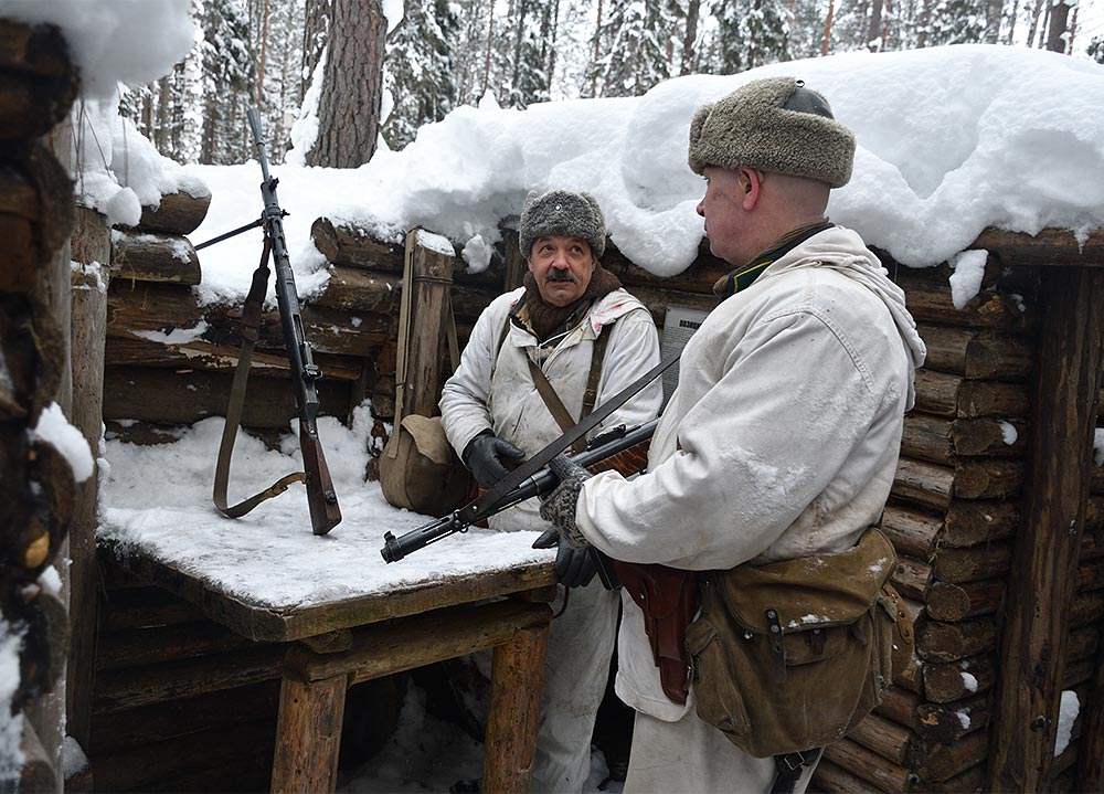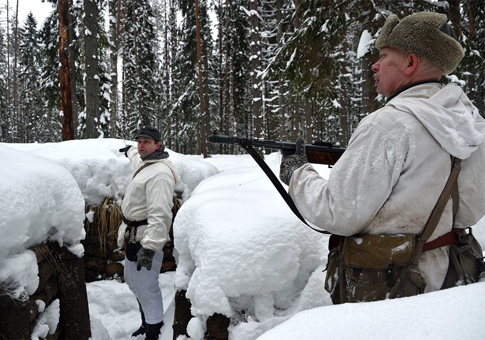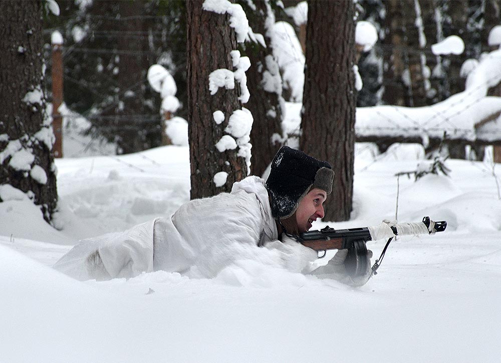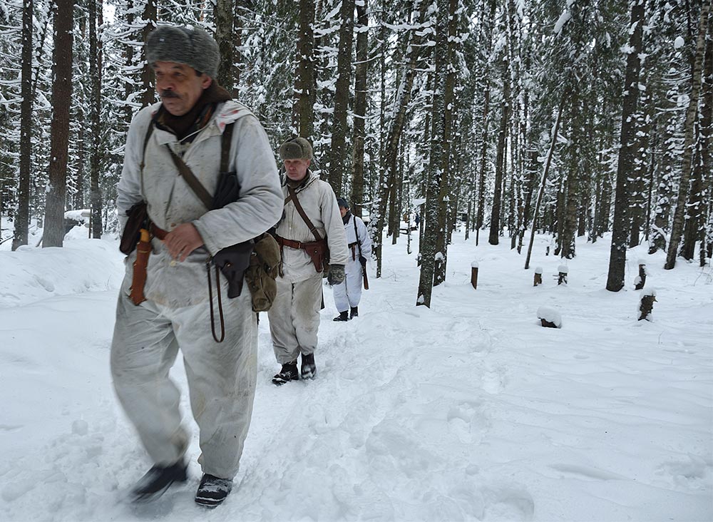 Реконструкция боевого эпизода на советско-финском фронте зимы 1943-44 гг в районе укреп-узла линии ВТ Куутерселька 21 ферваля 2021 года.