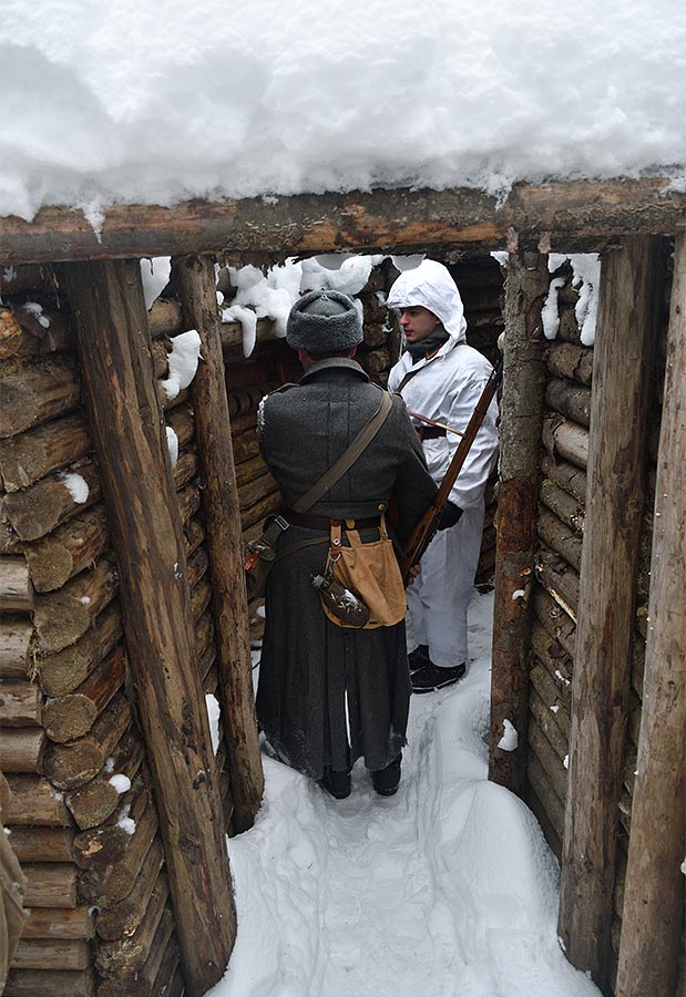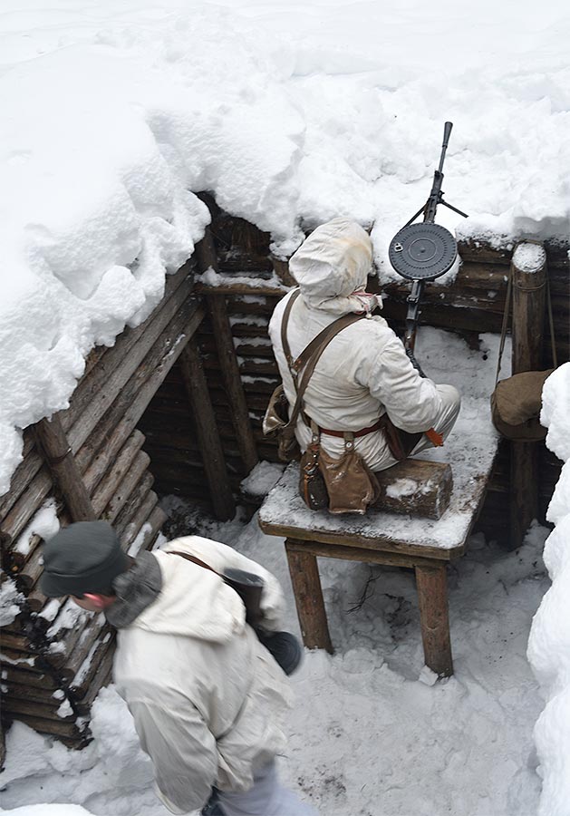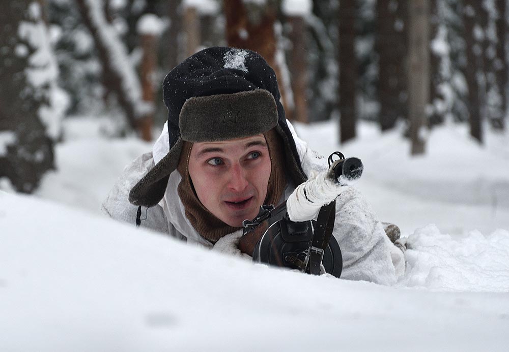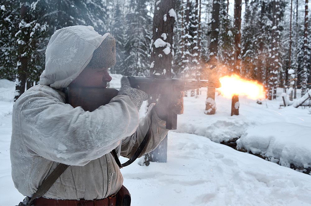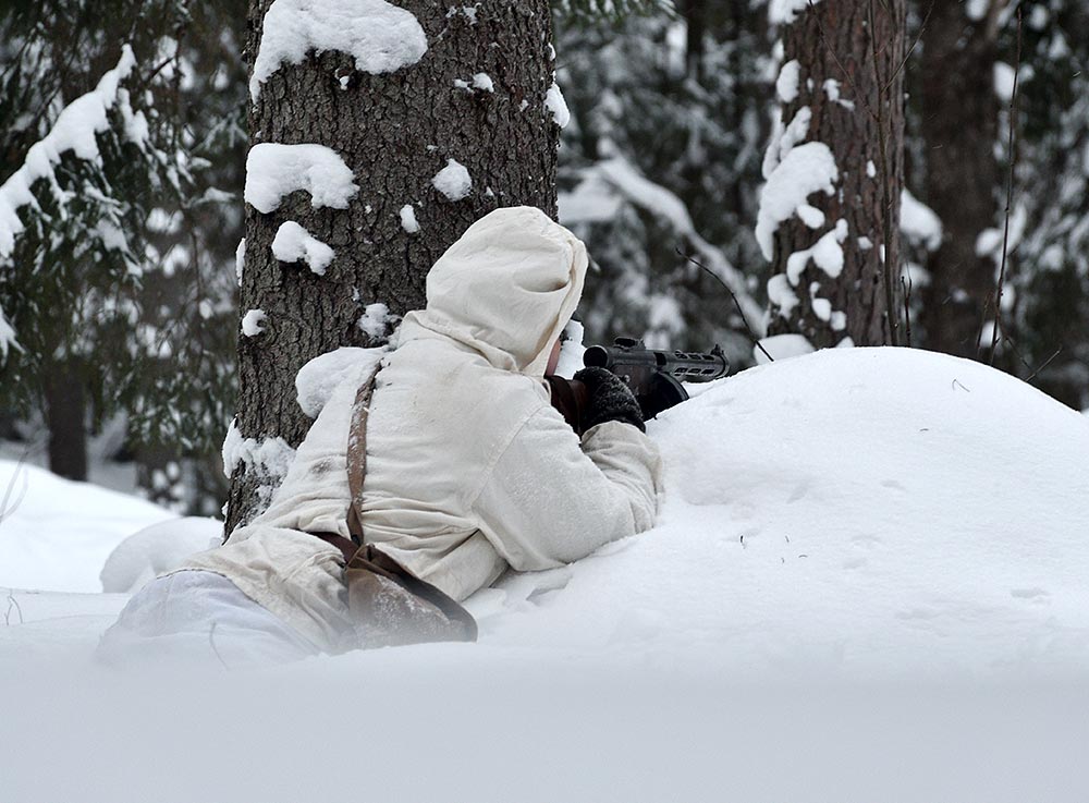 Реконструкция боевого эпизода на советско-финском фронте зимы 1943-44 гг в районе укреп-узла линии ВТ Куутерселька 21 ферваля 2021 года.