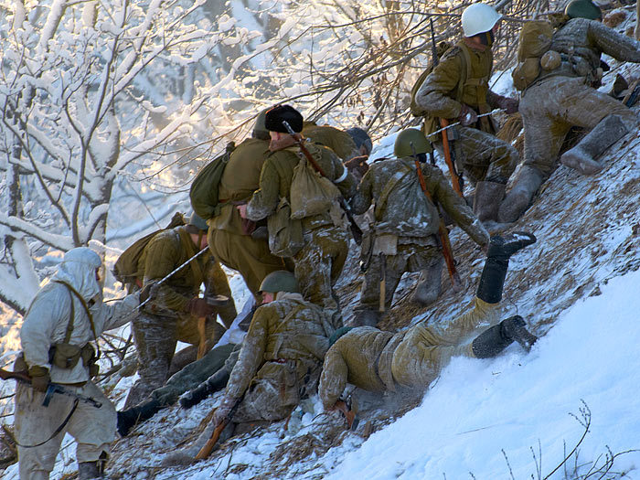 В январе этого года исполняется 70 лет со дня полного снятия блокады Ленинграда. Фоторепортаж с одного из мероприятий, посвящённых этой дате. Военно историческая реконструкция проходила в Красном Селе 19 января 2014 года