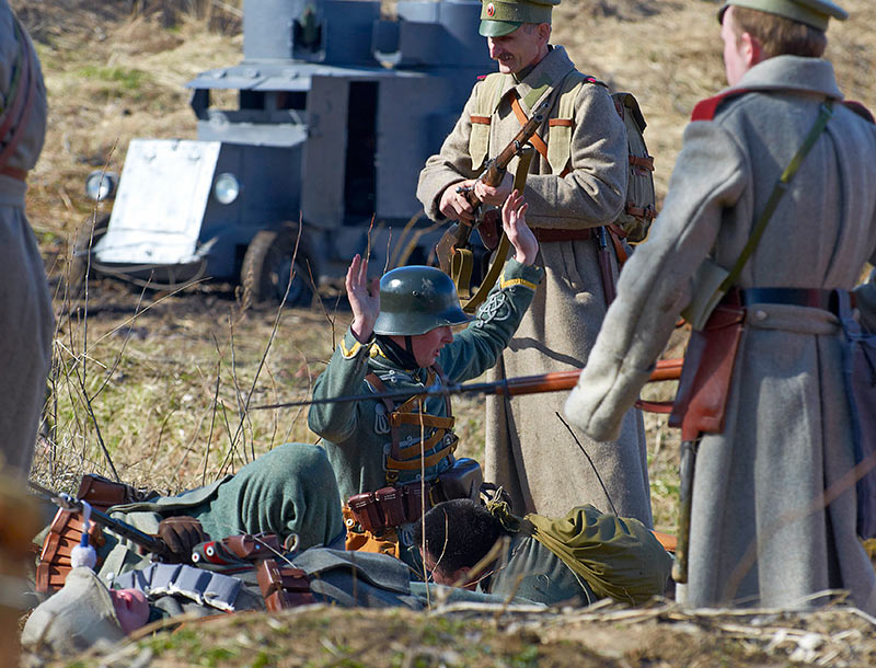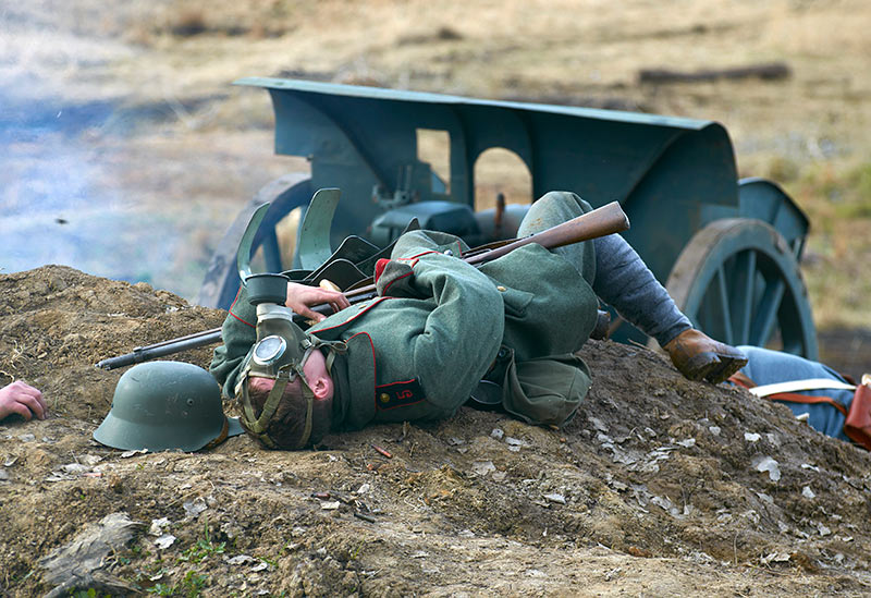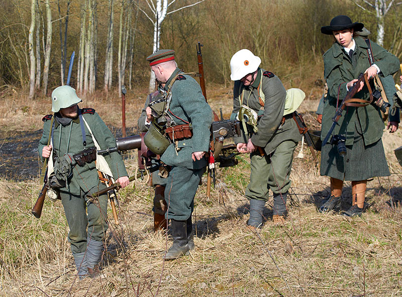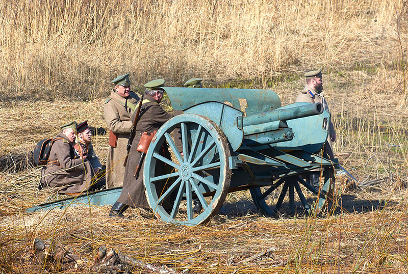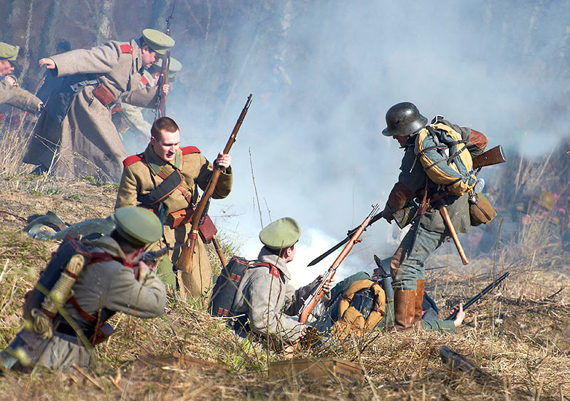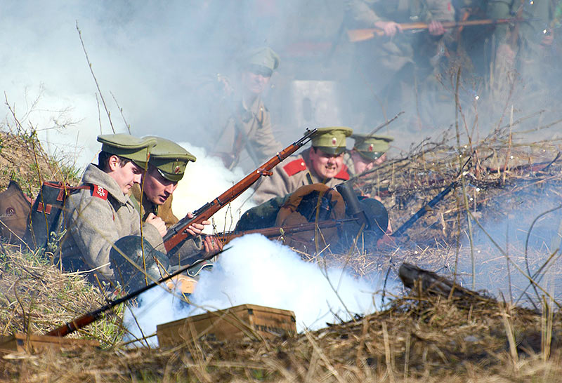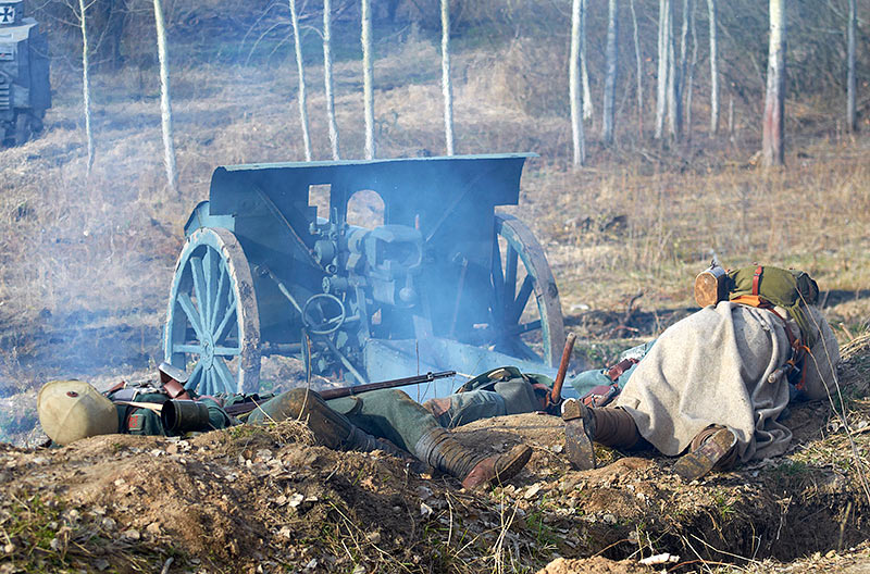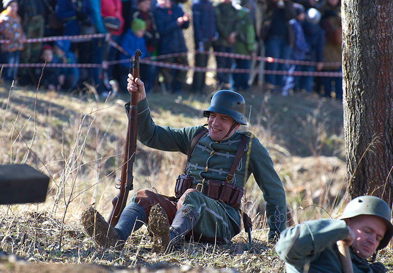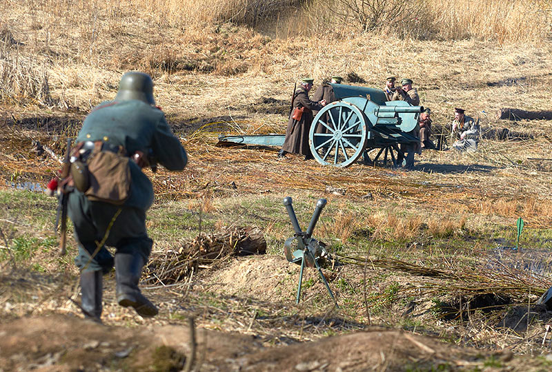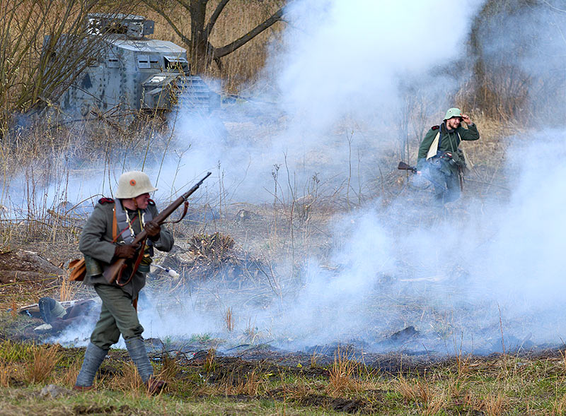 Реконструкция событий Первой мировой войны в Полежаевском ПаркеСанкт-Петербург, 23 апреля 2016 года.