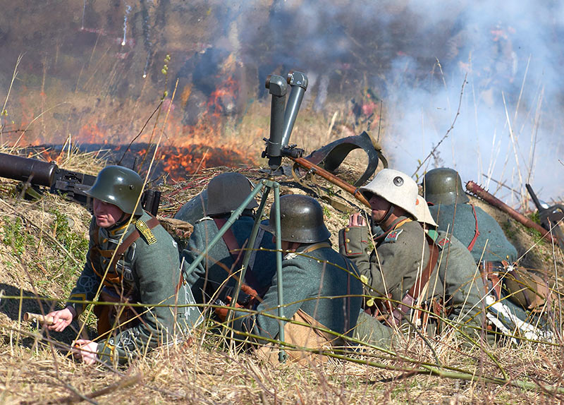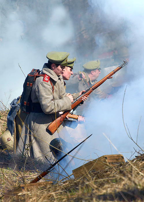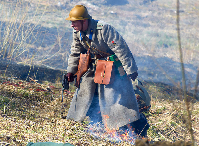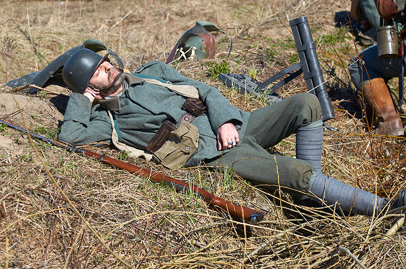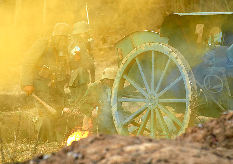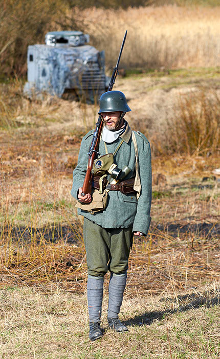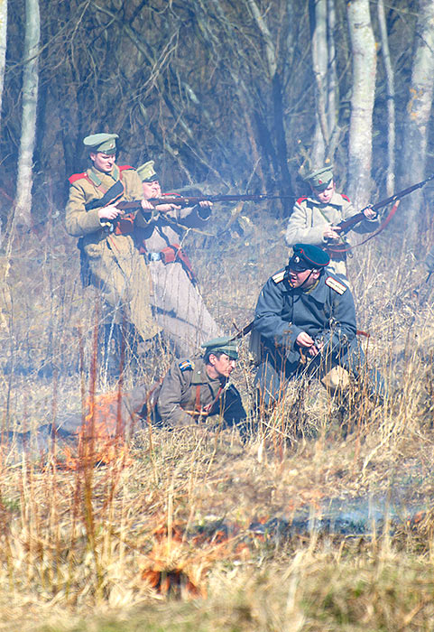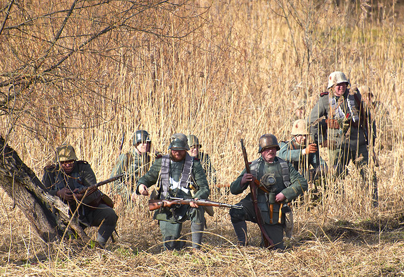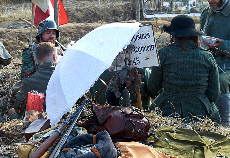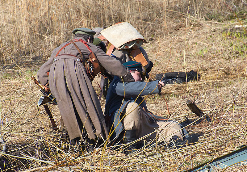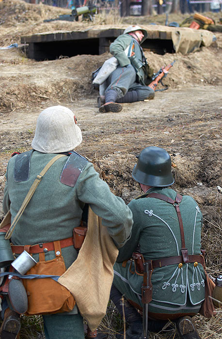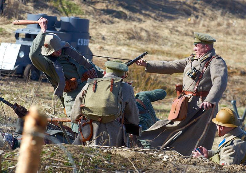 Реконструкция событий Первой мировой войны в Полежаевском ПаркеСанкт-Петербург, 23 апреля 2016 года.