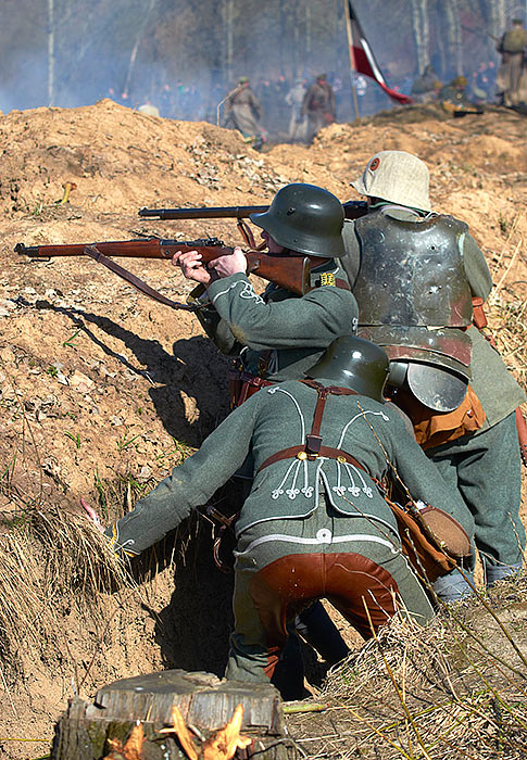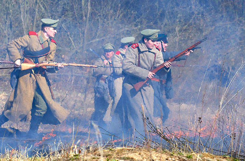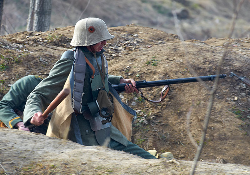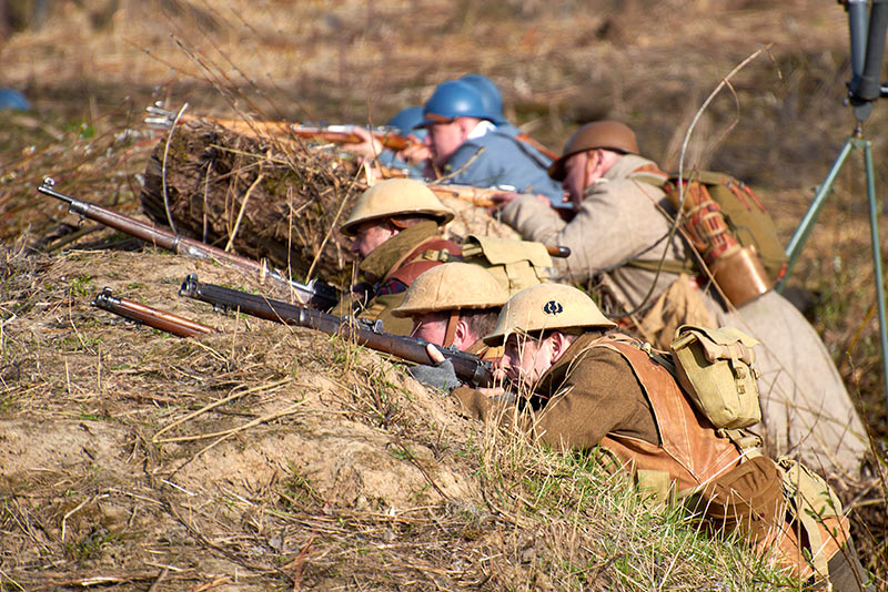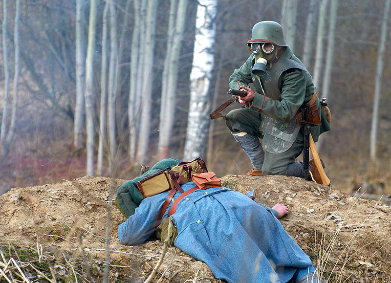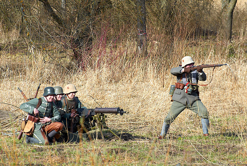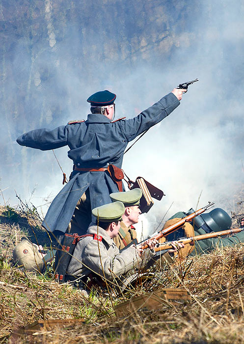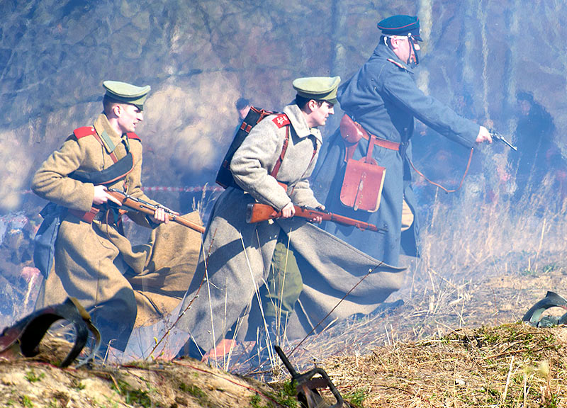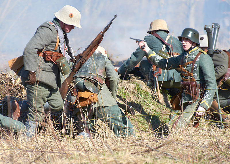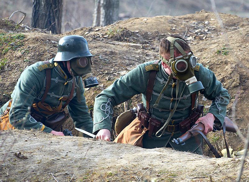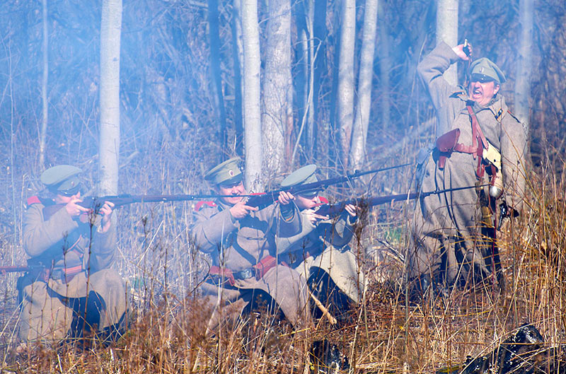 Реконструкция событий Первой мировой войны в Полежаевском ПаркеСанкт-Петербург, 23 апреля 2016 года.
