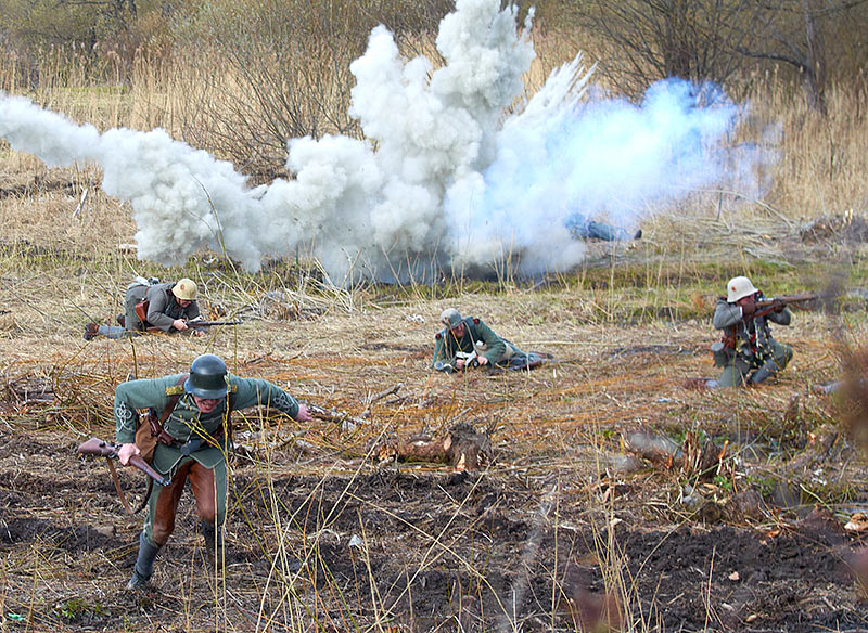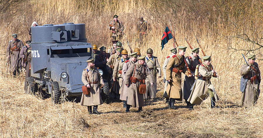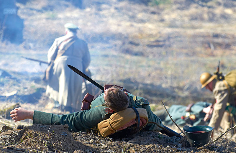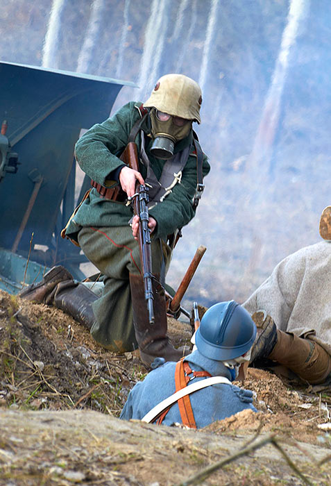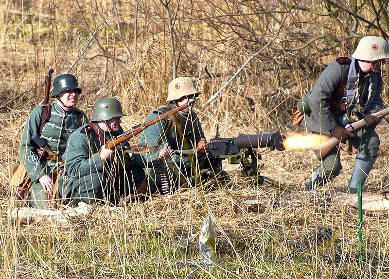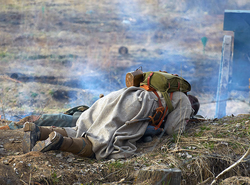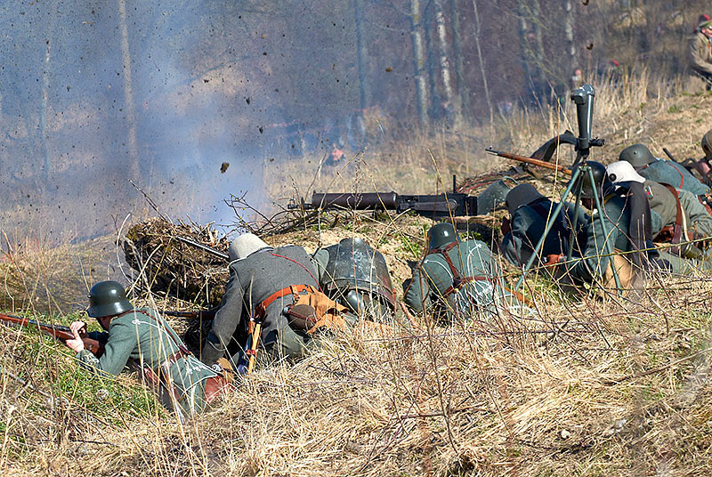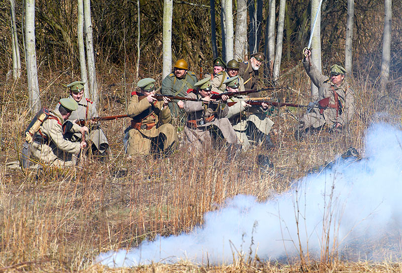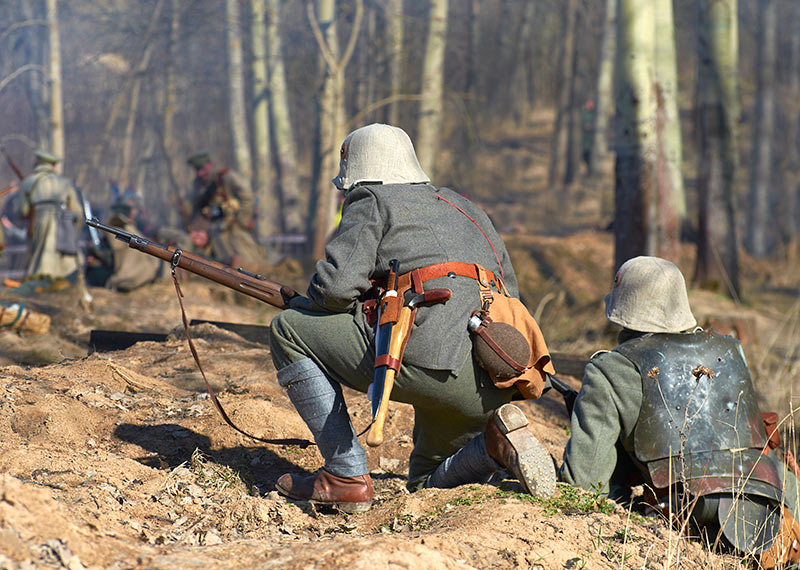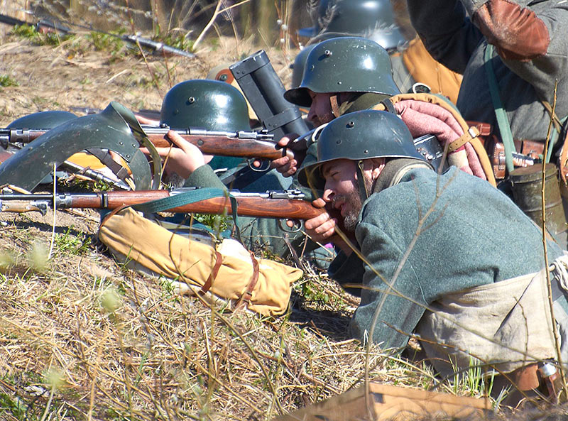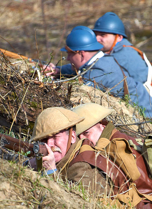 Реконструкция событий Первой мировой войны в Полежаевском ПаркеСанкт-Петербург, 23 апреля 2016 года.