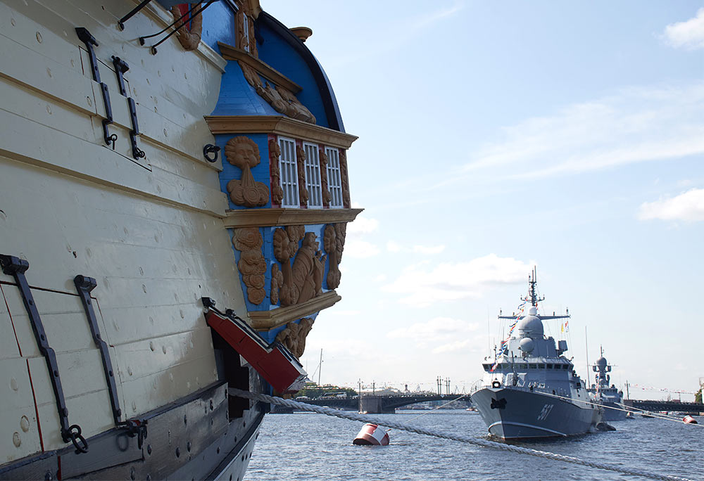 Фотографии линейного корабля "Полтава", сделанные 26 и 28 июля 2019 года во время дня ВМФ в СЧанкт-Петербурге.