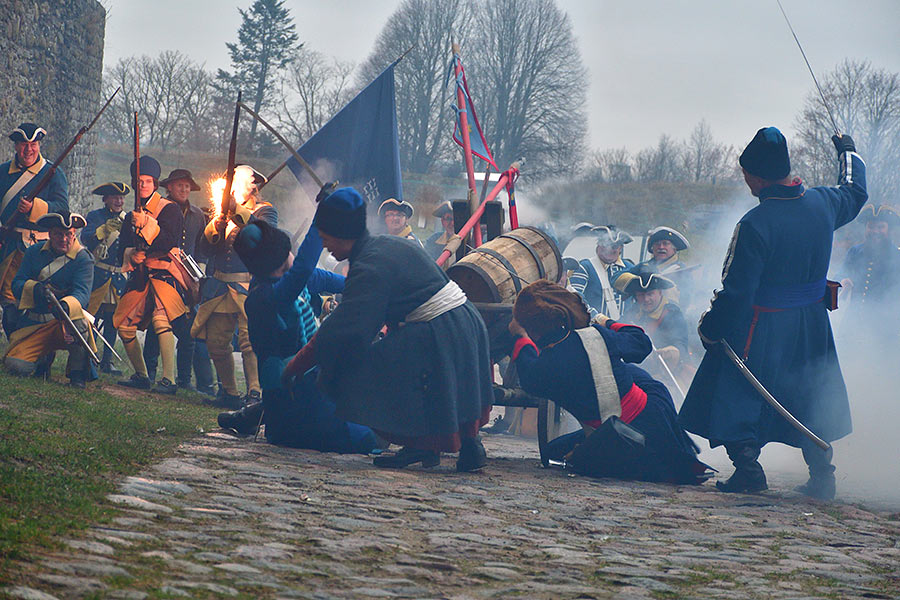 Штурм и падение замка Раквере в восточной Эстляндии во время Великой Северной войны 1700-1721 года. Реконструкция события была достоверно восстановлена 9-10 ноября 2019 года совместными усилиями реконструкторских клубов России, Финляндии, Эстонии и Латвии.