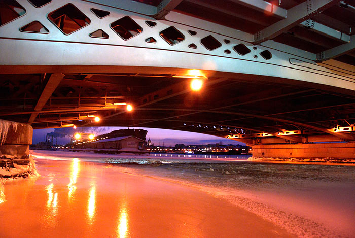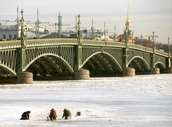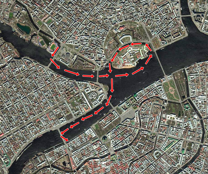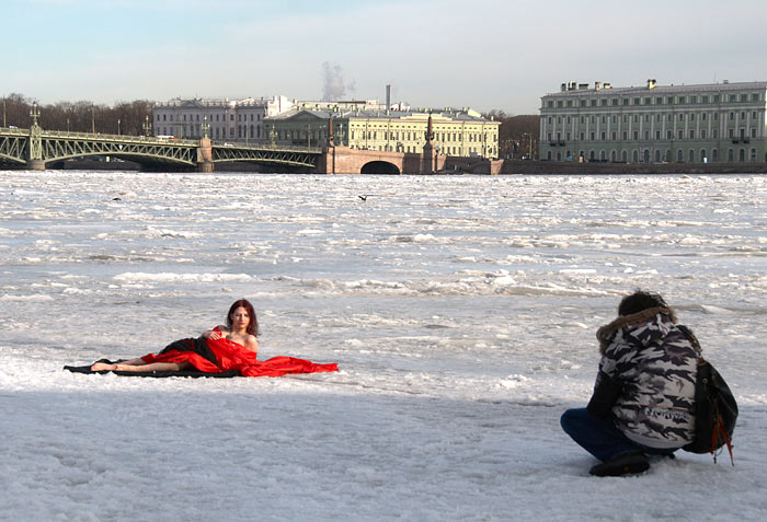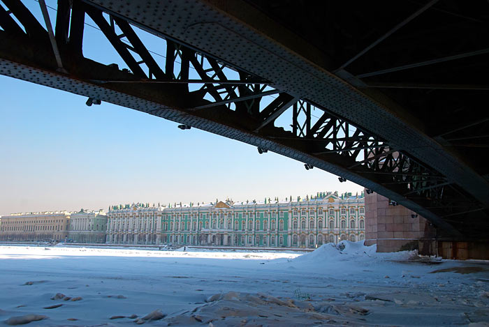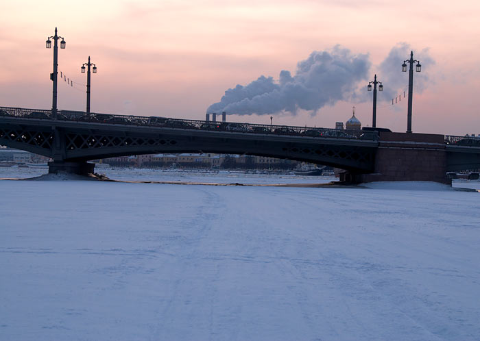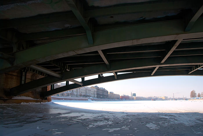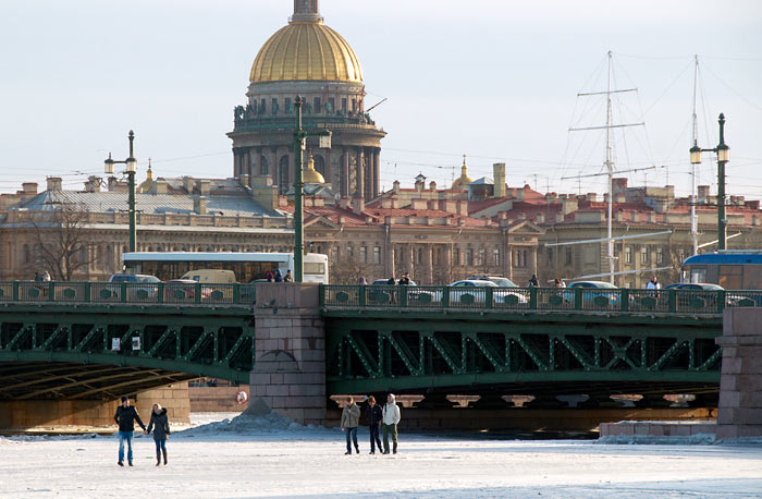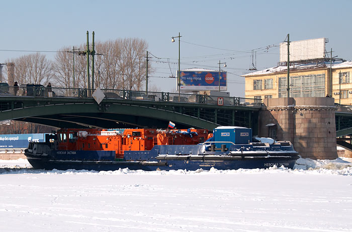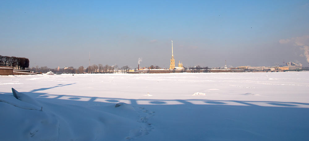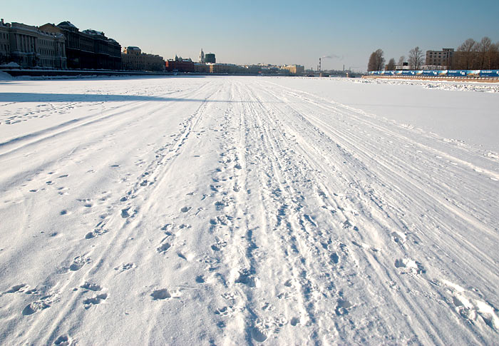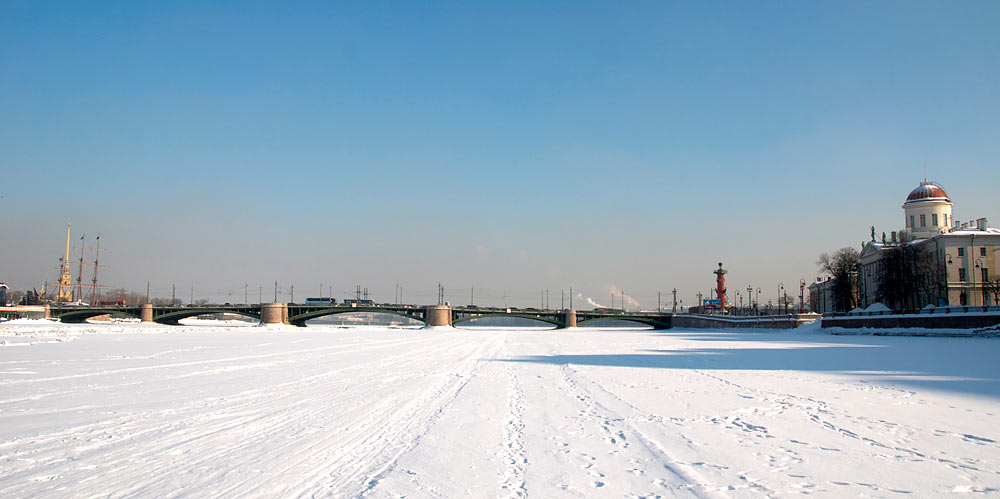 В продолжение беспримерного ледового перехода по рекам и каналам Санкт-Петербурга: по вдоль по Малой Неве от Тучкова моста к Петропавловской крепости и от неё по большой Неве до моста л-та Шмидта (Благовещенского).