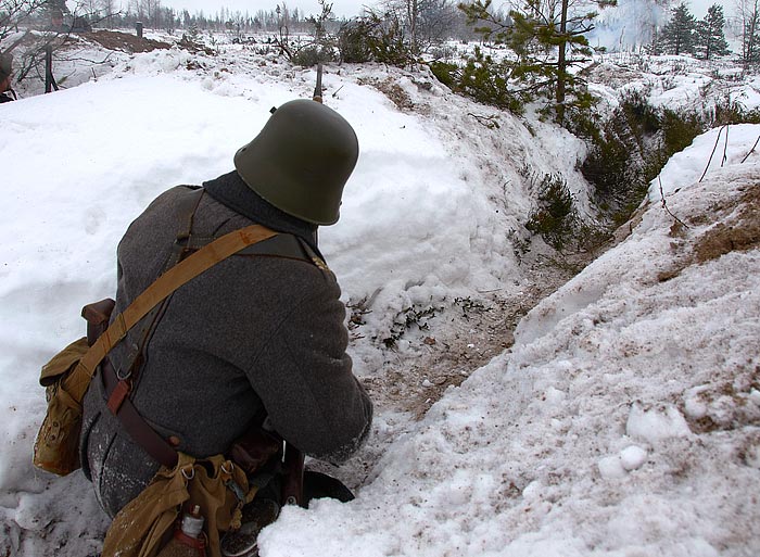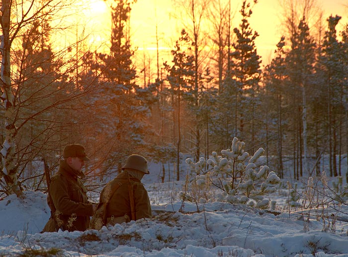 Событие имело место в секторе Сумма-ярве (Sj) Линии Маннергейма 2 декабря сего года. Окопы и траншеи - исторические, слегка лишь подновлённые. Солнце. небо, облака, сосны, снег, земля - те же самые, что и 70 лет назад...