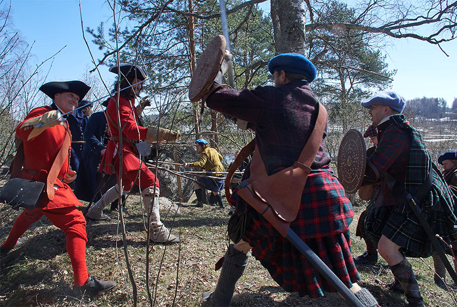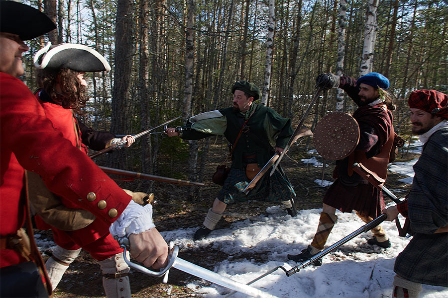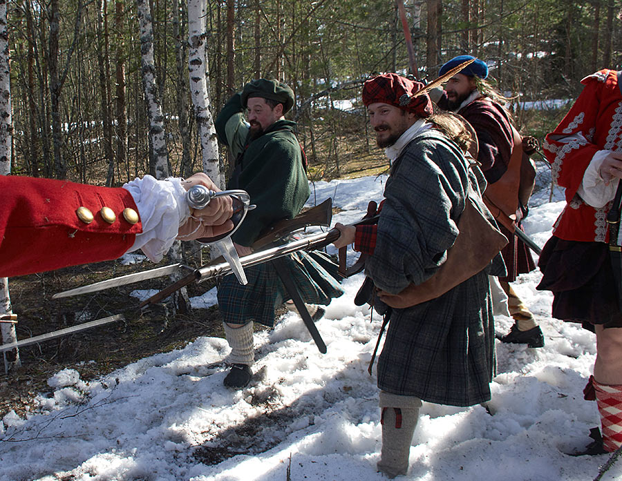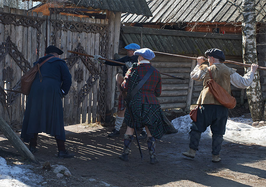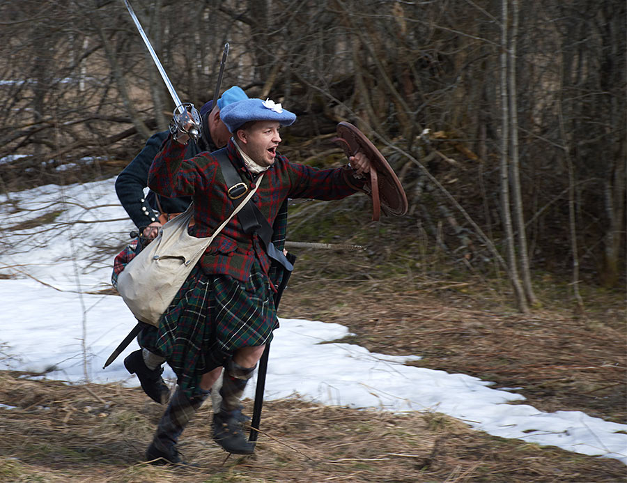 Жестокие сцены покорения Шотландии англичанами в XVI веке. Борьба свободолюбивого шотландского народа против британского империализма и реакции. Эпизоды партизанской войны в шотландских горах. Реконструкция исторических событий в Деревне викингов Сваргас под Выборгом 20-21 апреля 2019 года.