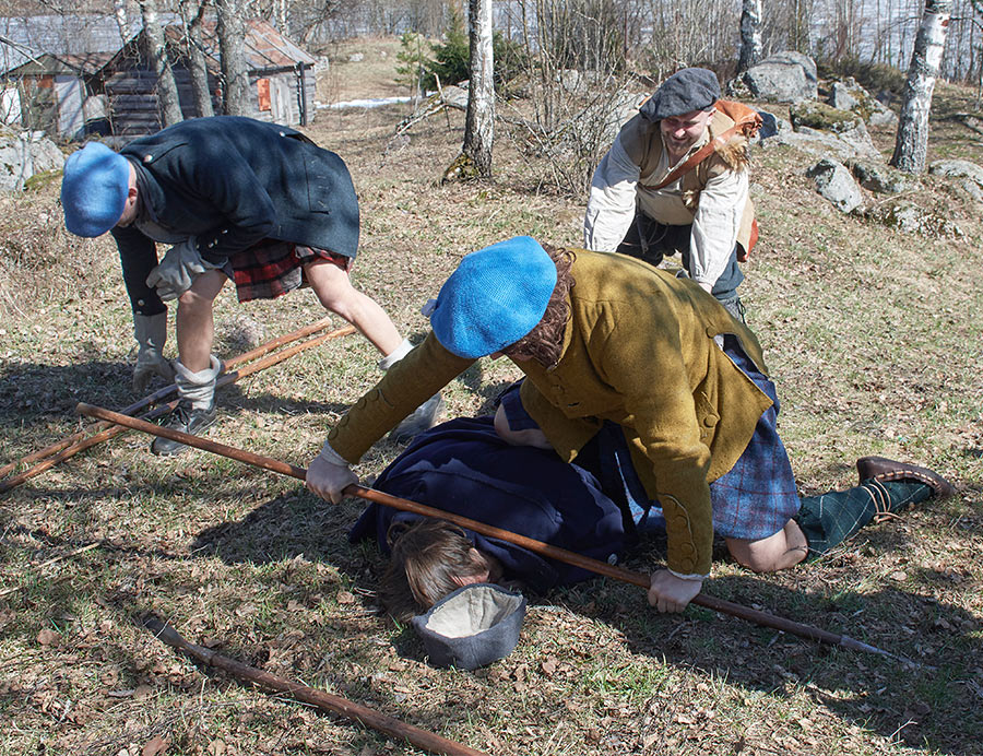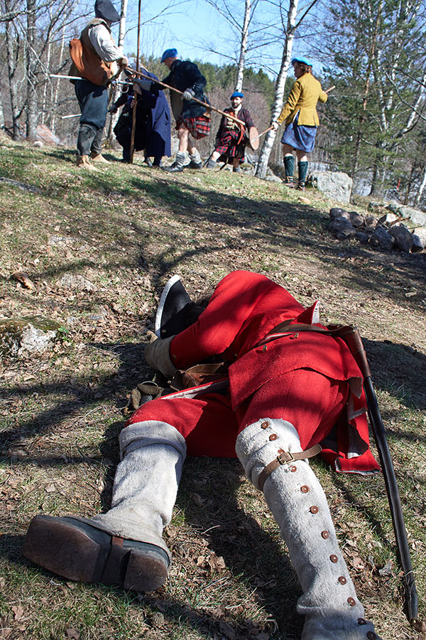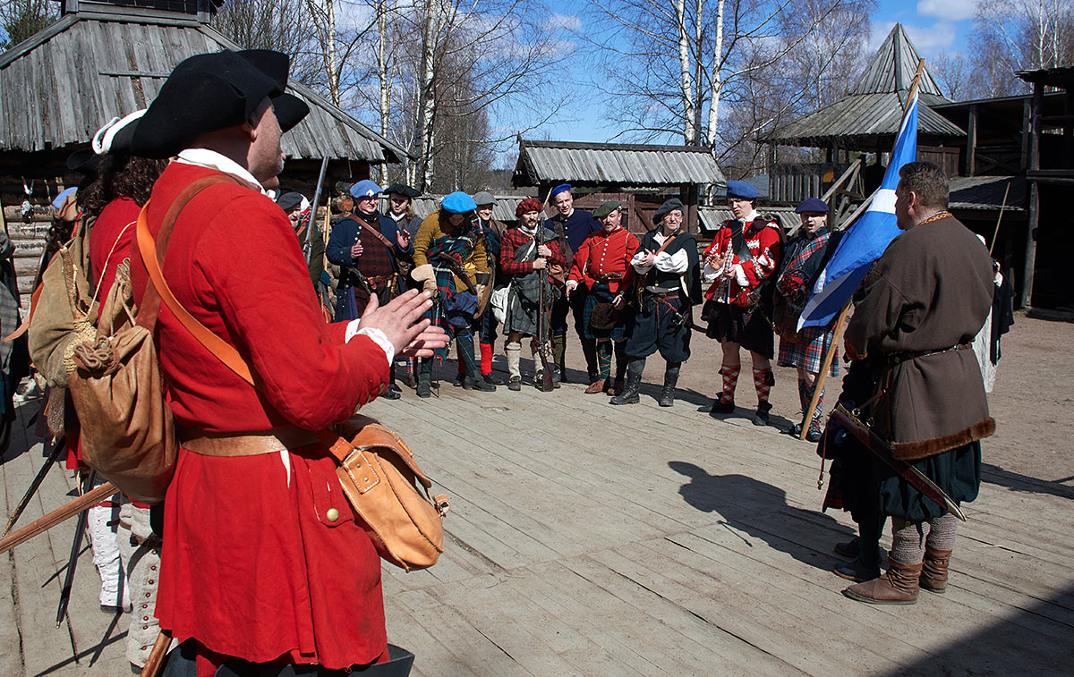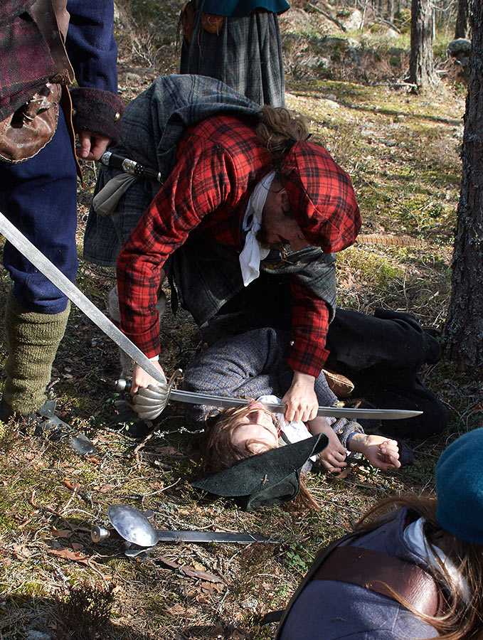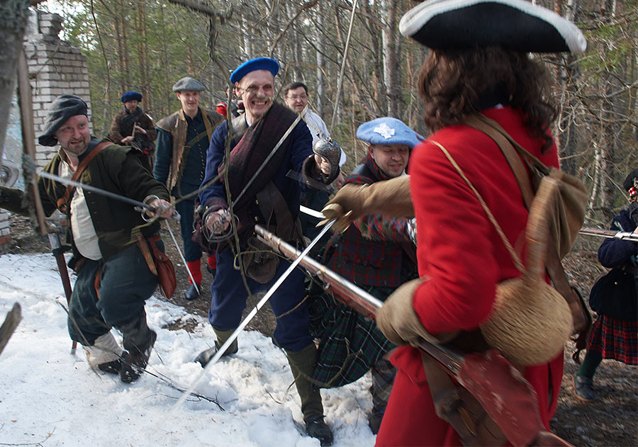 Жестокие сцены покорения Шотландии англичанами в XVI веке. Борьба свободолюбивого шотландского народа против британского империализма и реакции. Эпизоды партизанской войны в шотландских горах. Реконструкция исторических событий в Деревне викингов Сваргас под Выборгом 20-21 апреля 2019 года.