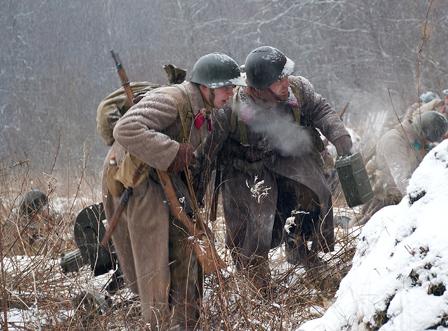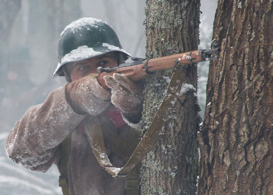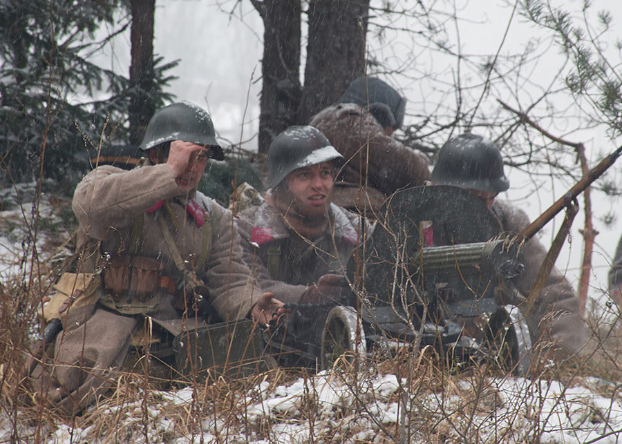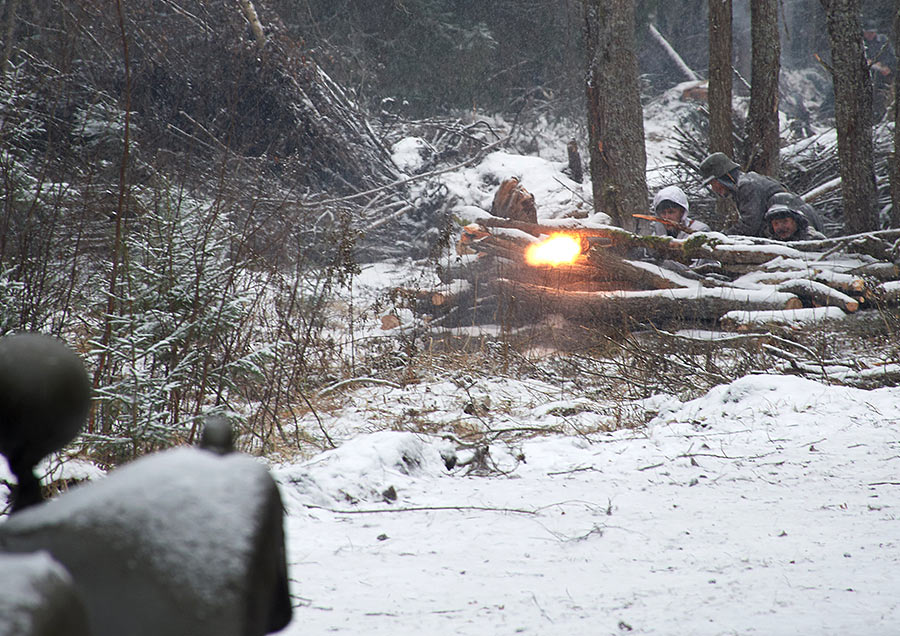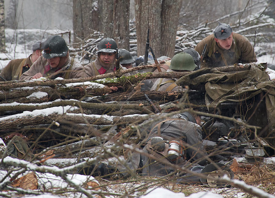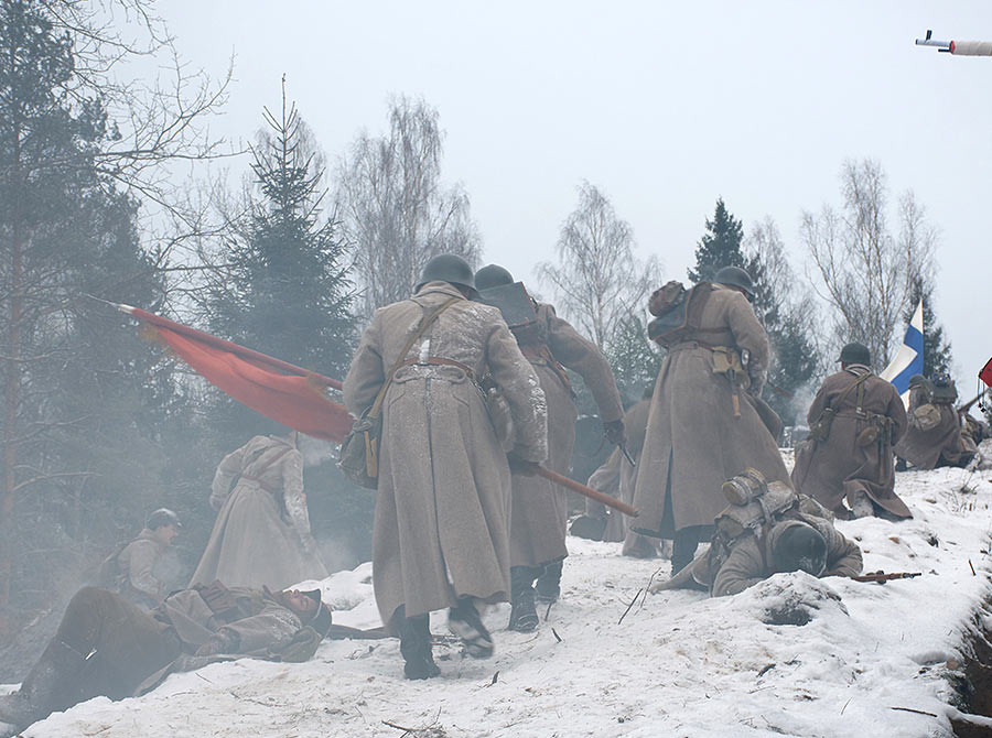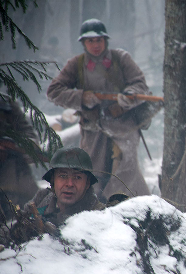 Фоторепортаж с военно-исторической реконструкции начала Зимней войны 1939-1941 у пос. Нюнемяки (Карельский перешеек) 3 декабря 2018 года.