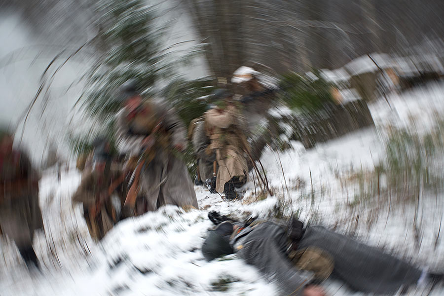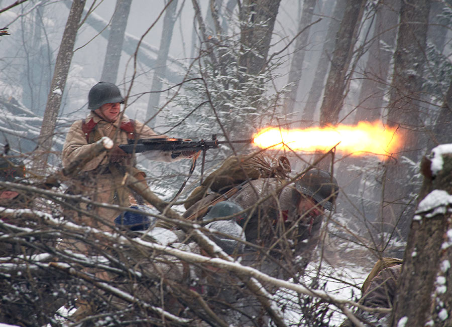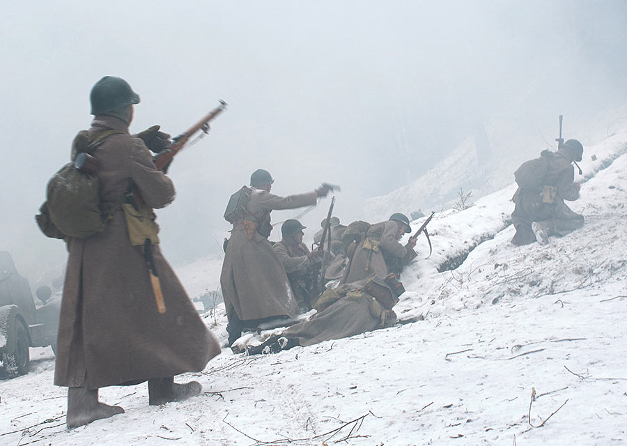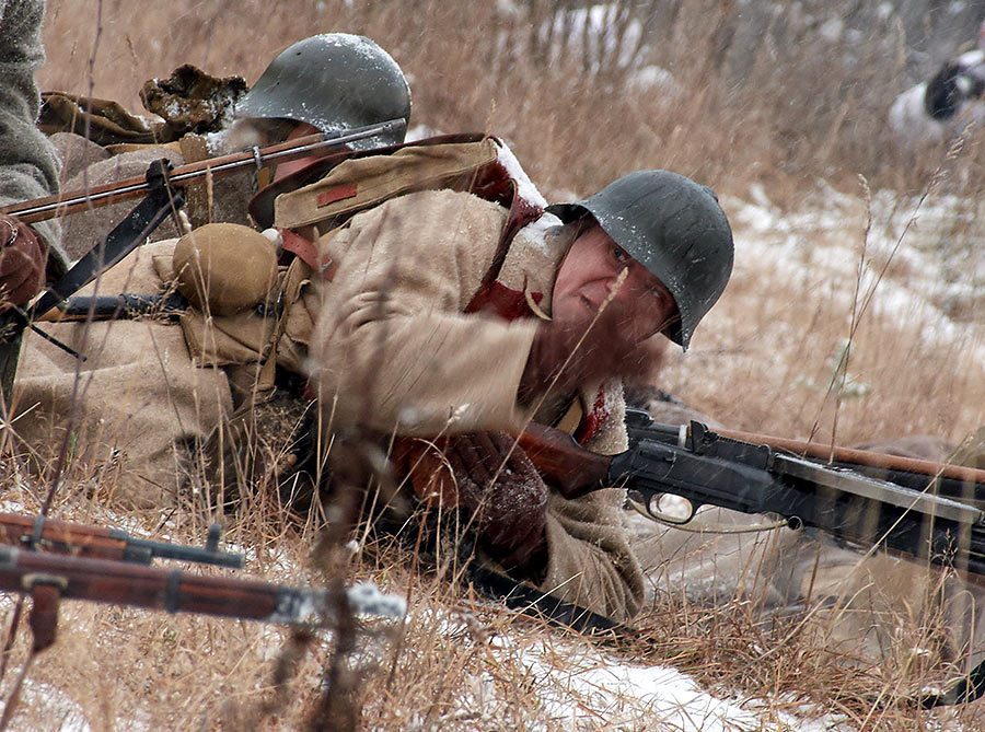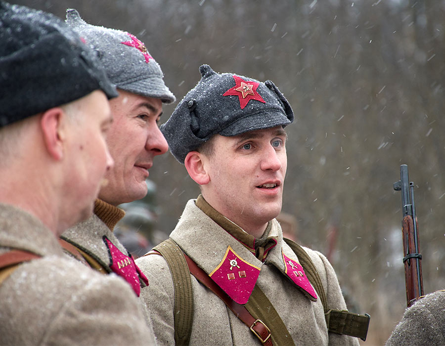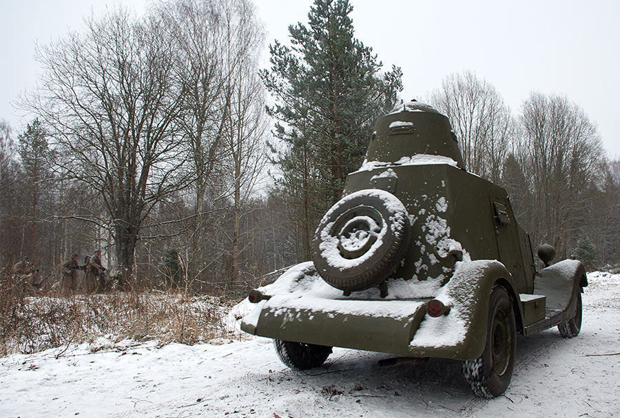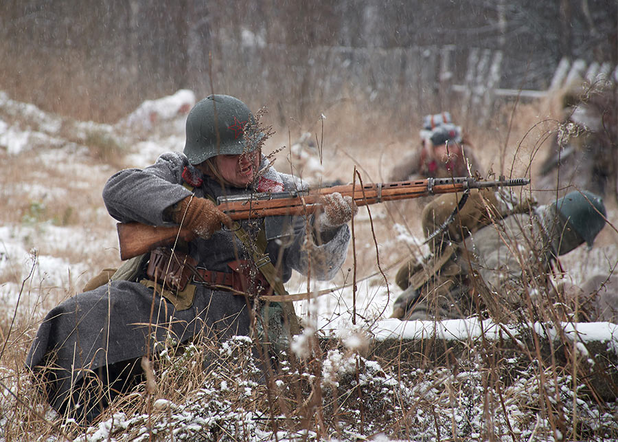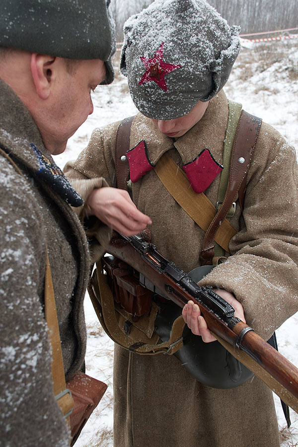 Фоторепортаж с военно-исторической реконструкции начала Зимней войны 1939-1941 у пос. Нюнемяки (Карельский перешеек) 3 декабря 2018 года.