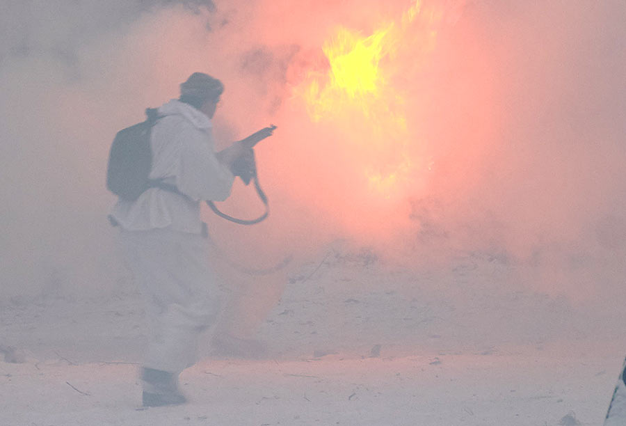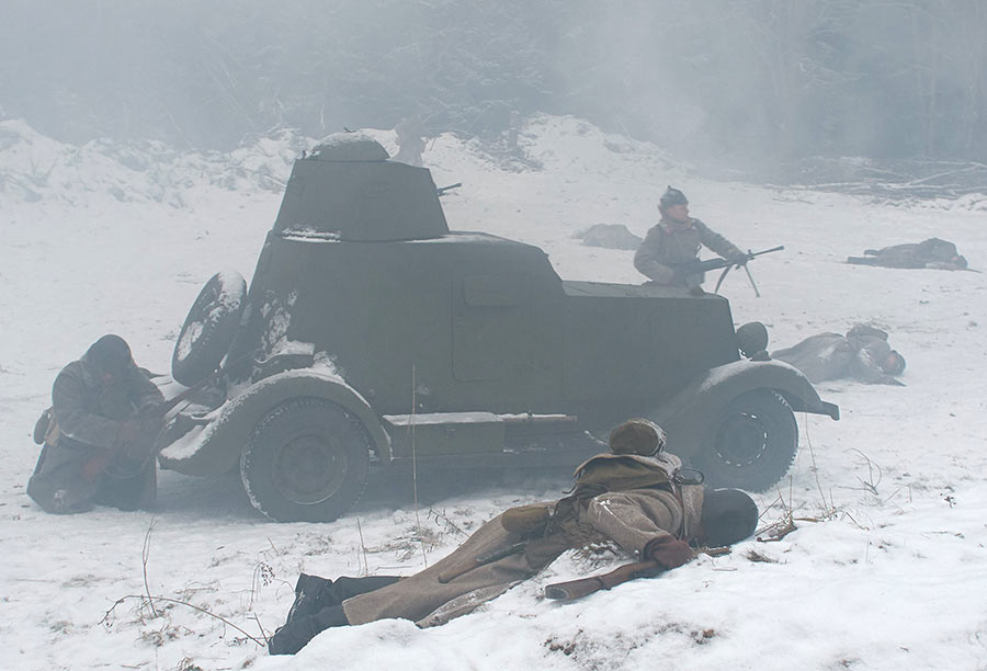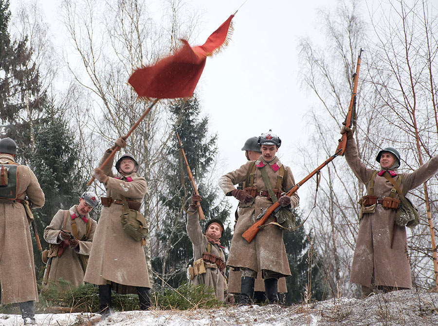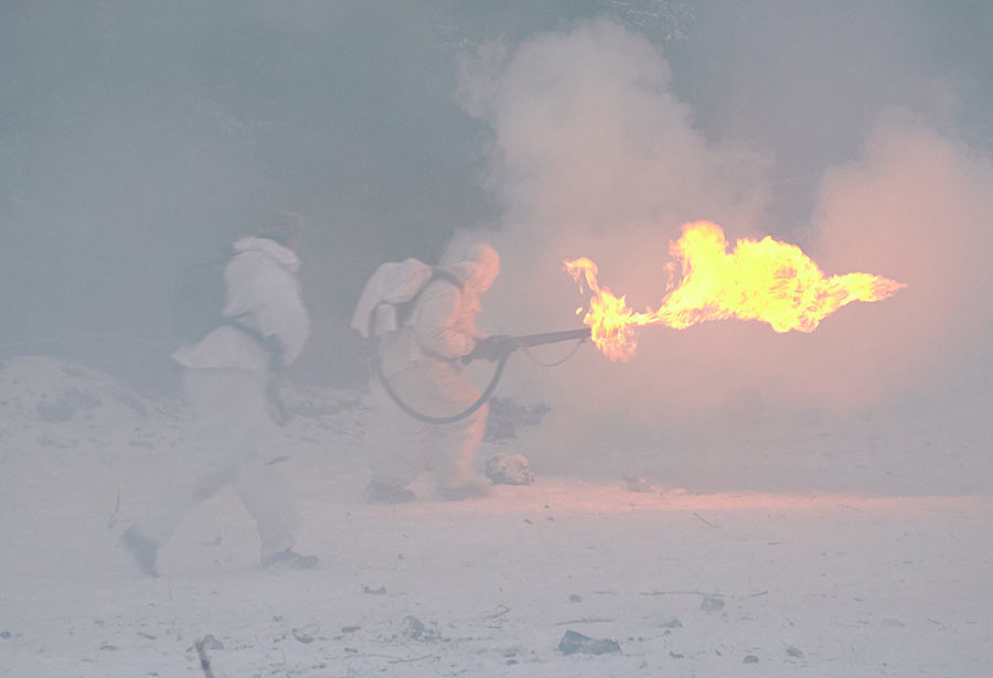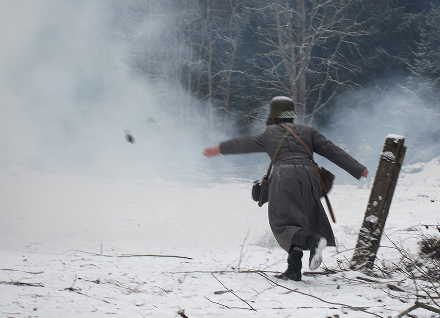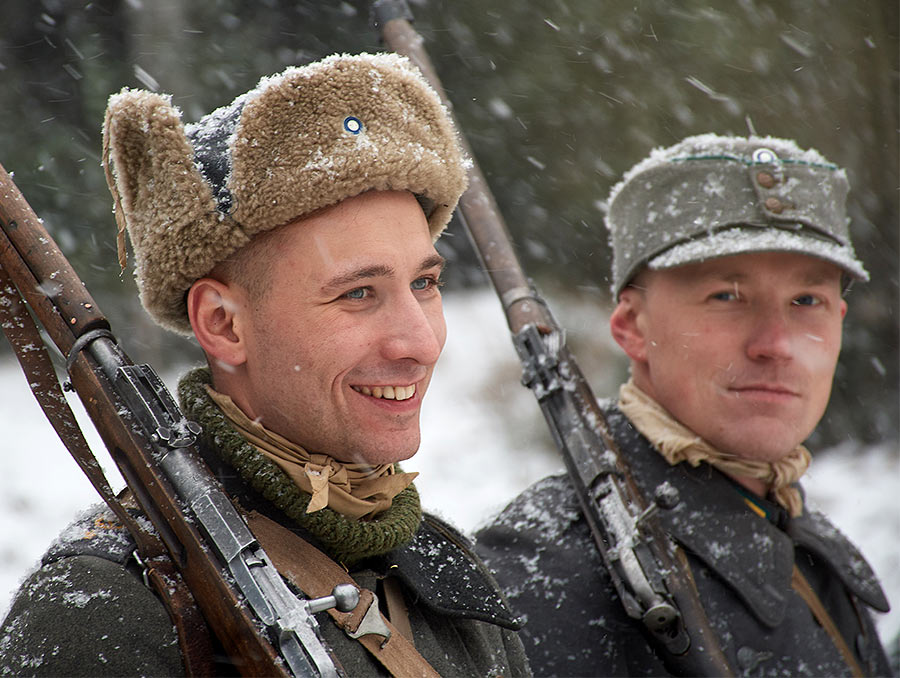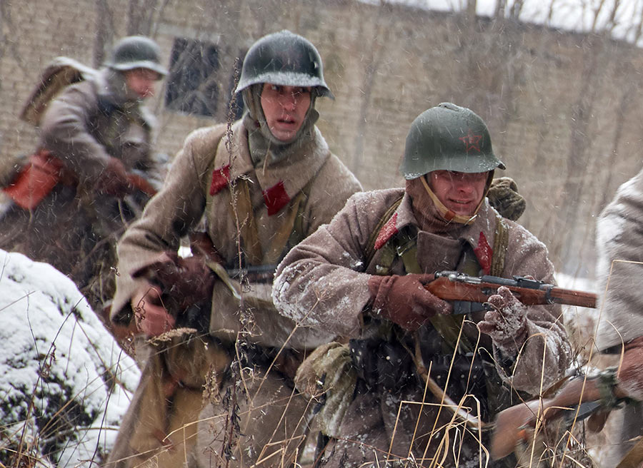 Фоторепортаж с военно-исторической реконструкции начала Зимней войны 1939-1941 у пос. Нюнемяки (Карельский перешеек) 3 декабря 2018 года.