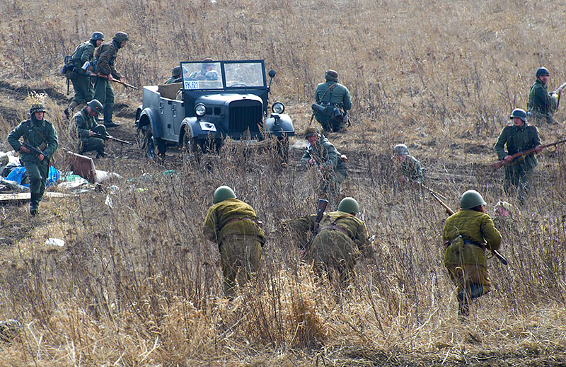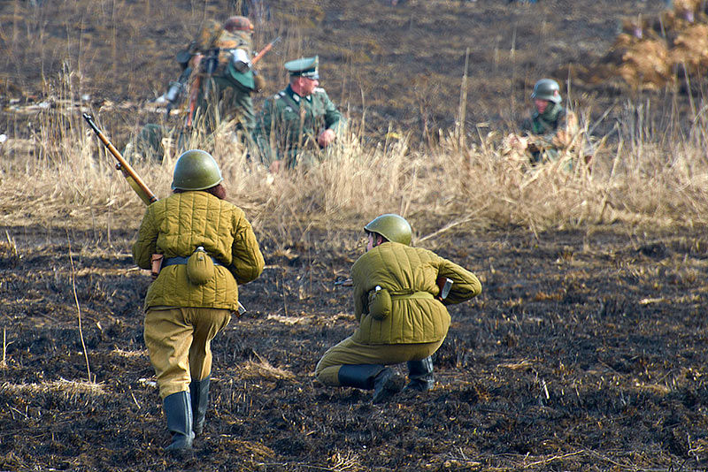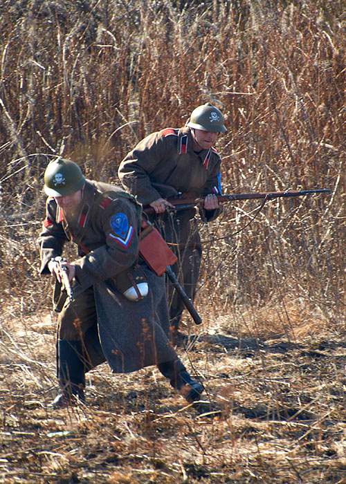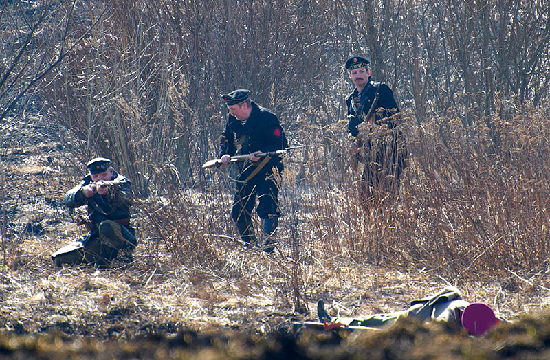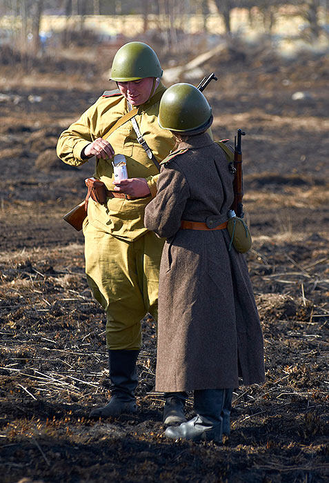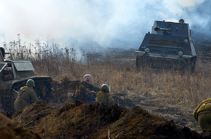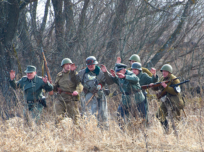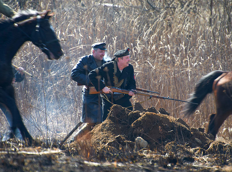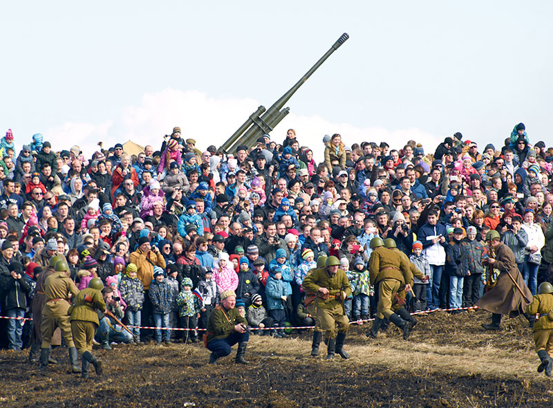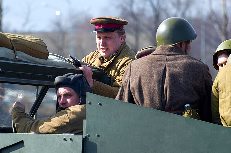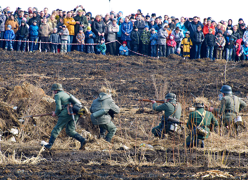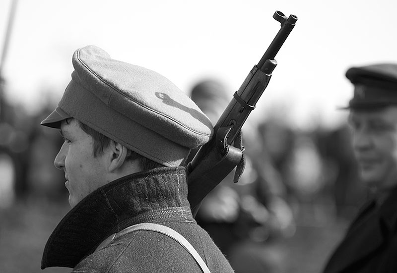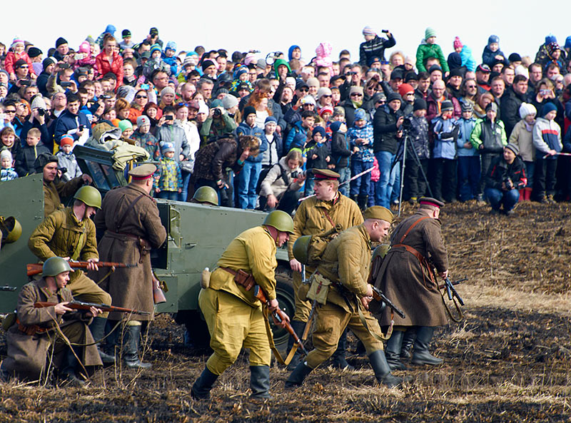 Масштабный военно-исторический фестиваль в Петергофе "Боевая сталь" 3 апреля 2016 года. Несколько фото - цветных и черно-белых.