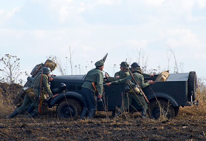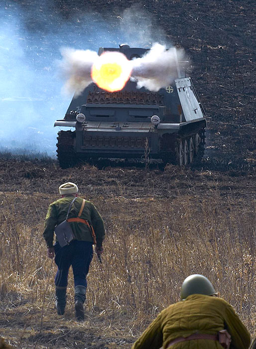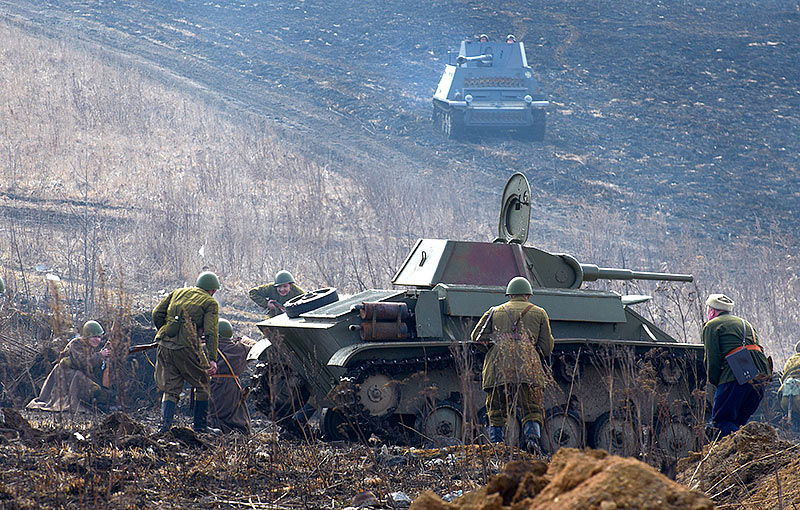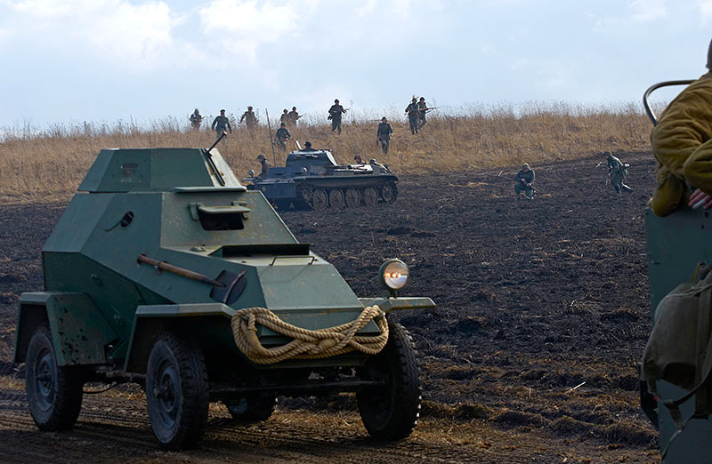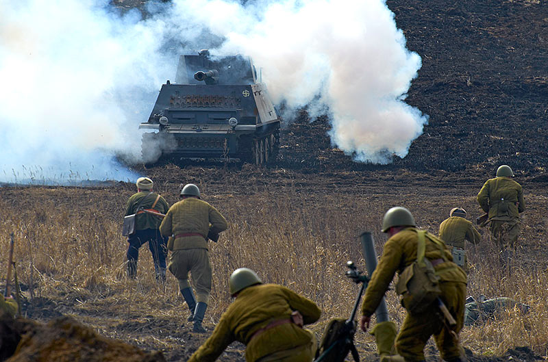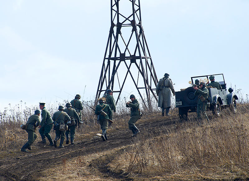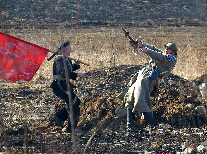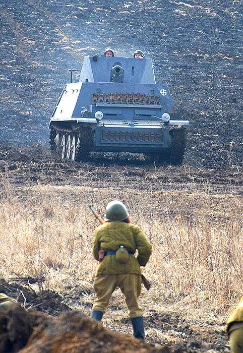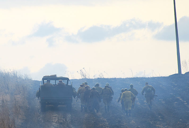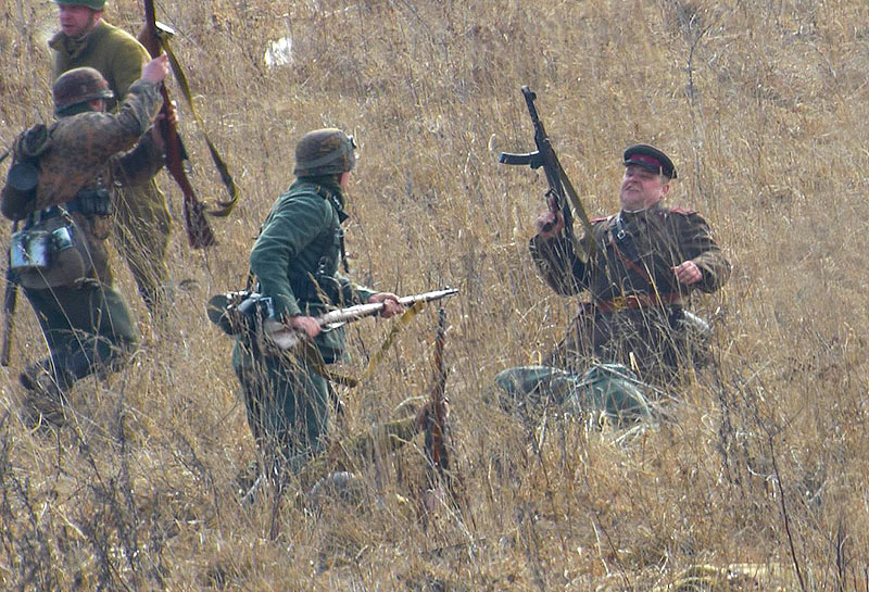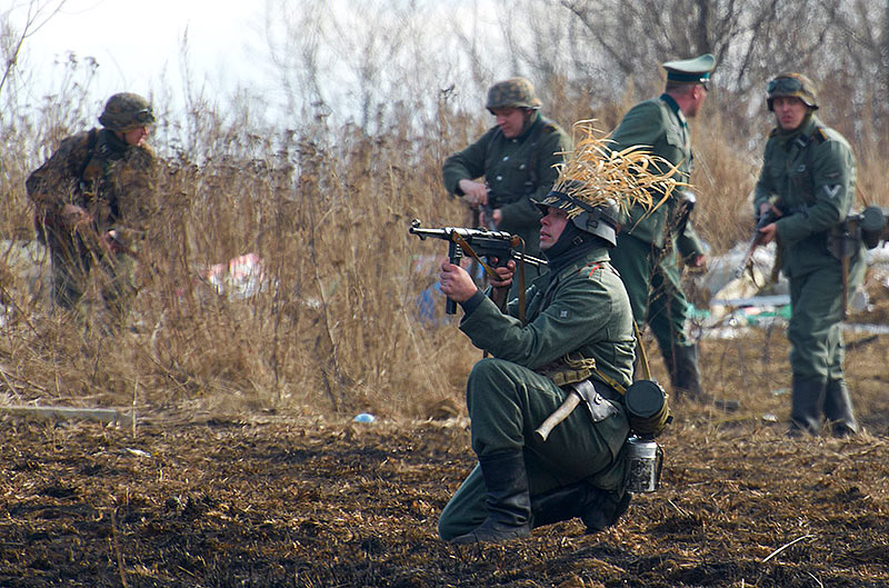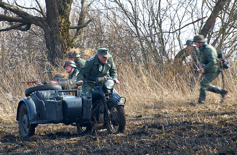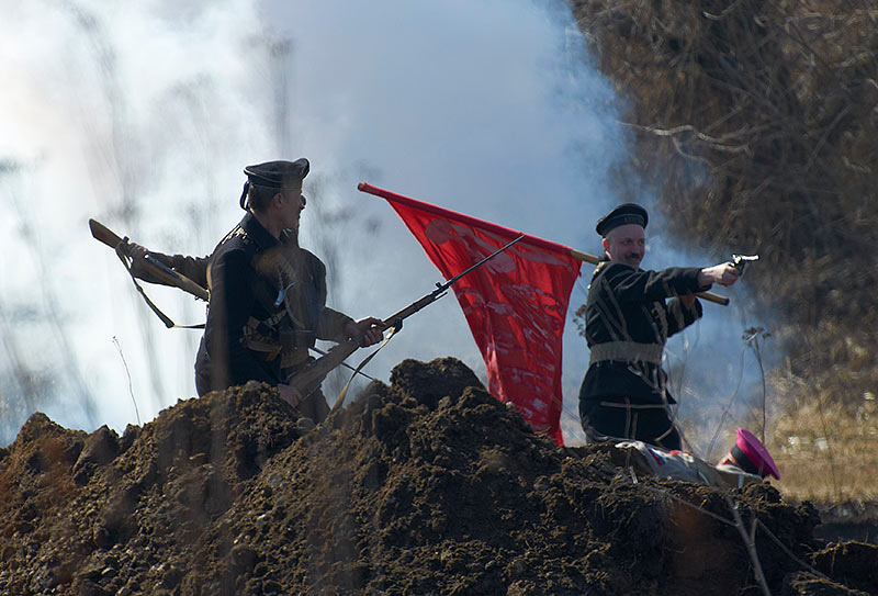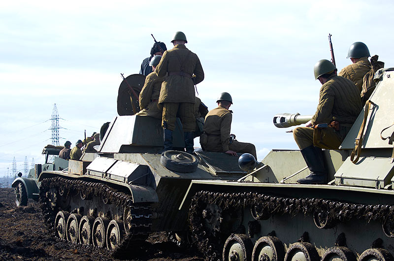 Масштабный военно-исторический фестиваль в Петергофе "Боевая сталь" 3 апреля 2016 года. Несколько фото - цветных и черно-белых.